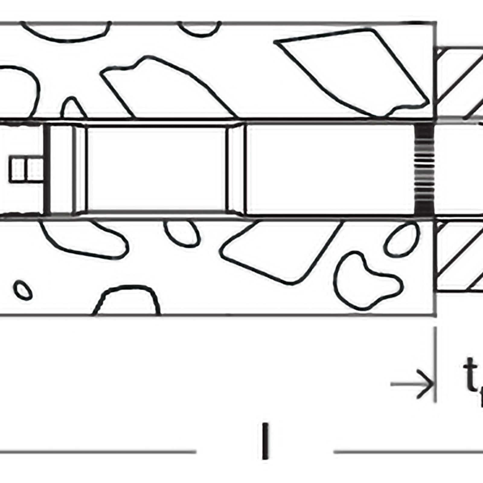 - Der perfekte Formschluss im Hinterschnitt garantiert die Aufnahme hoher Lasten (Kopfbolzentheorie) für Anwendungen mit höchstem Sicherheitsniveau.