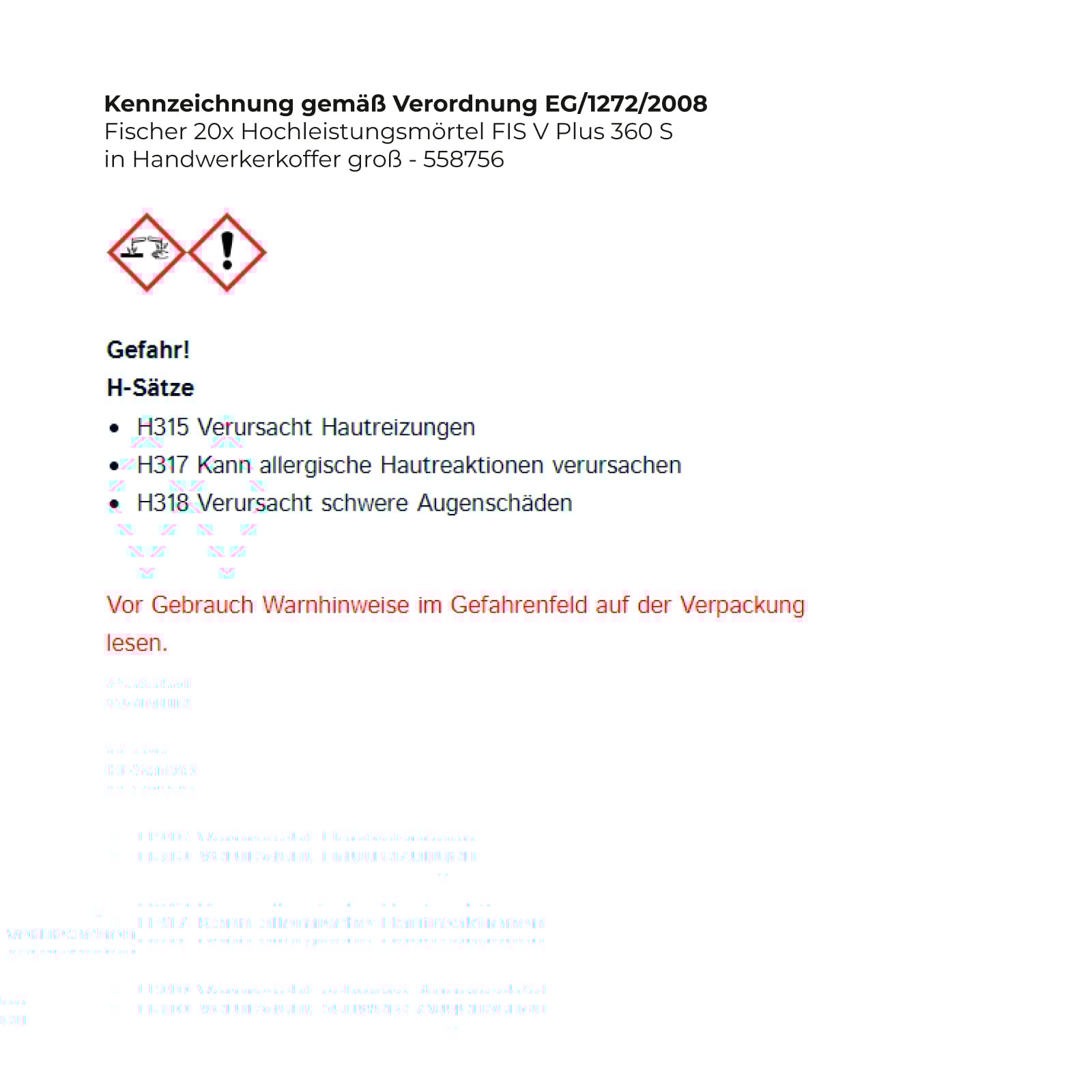 "Fischer 20x Hochleistungsmörtel FIS V Plus 360 S in Handwerkerkoffer groß - 558756"
