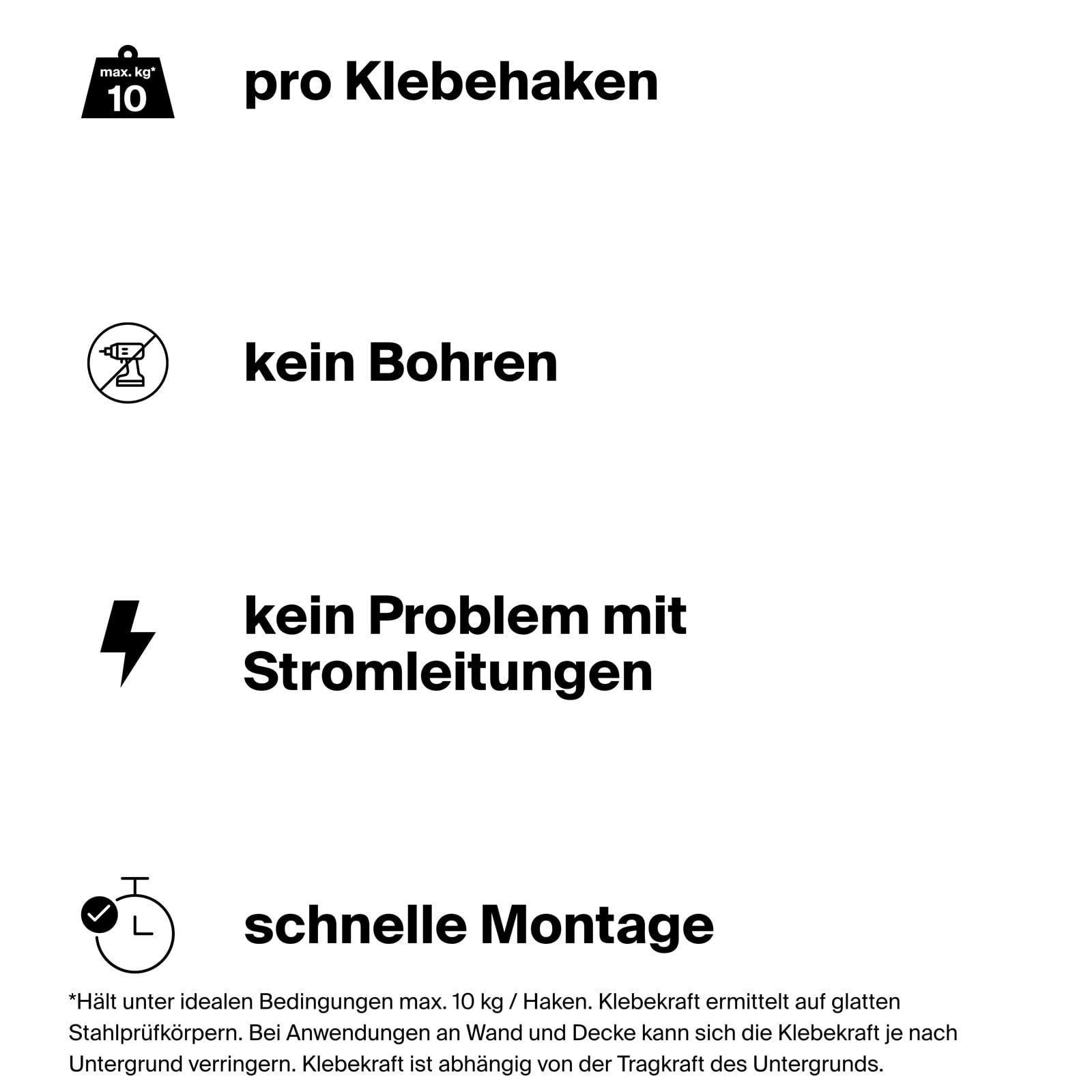 - Klebehaken für mindestens 10 Sekunden fest an die Decke drücken.