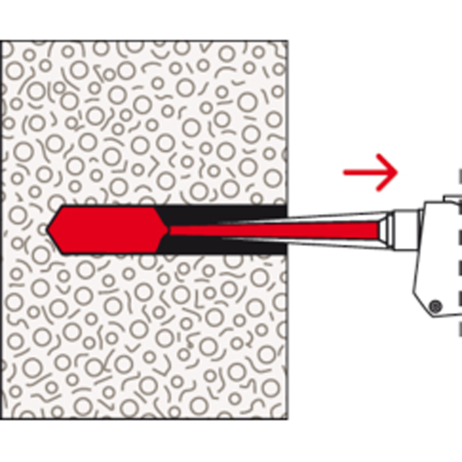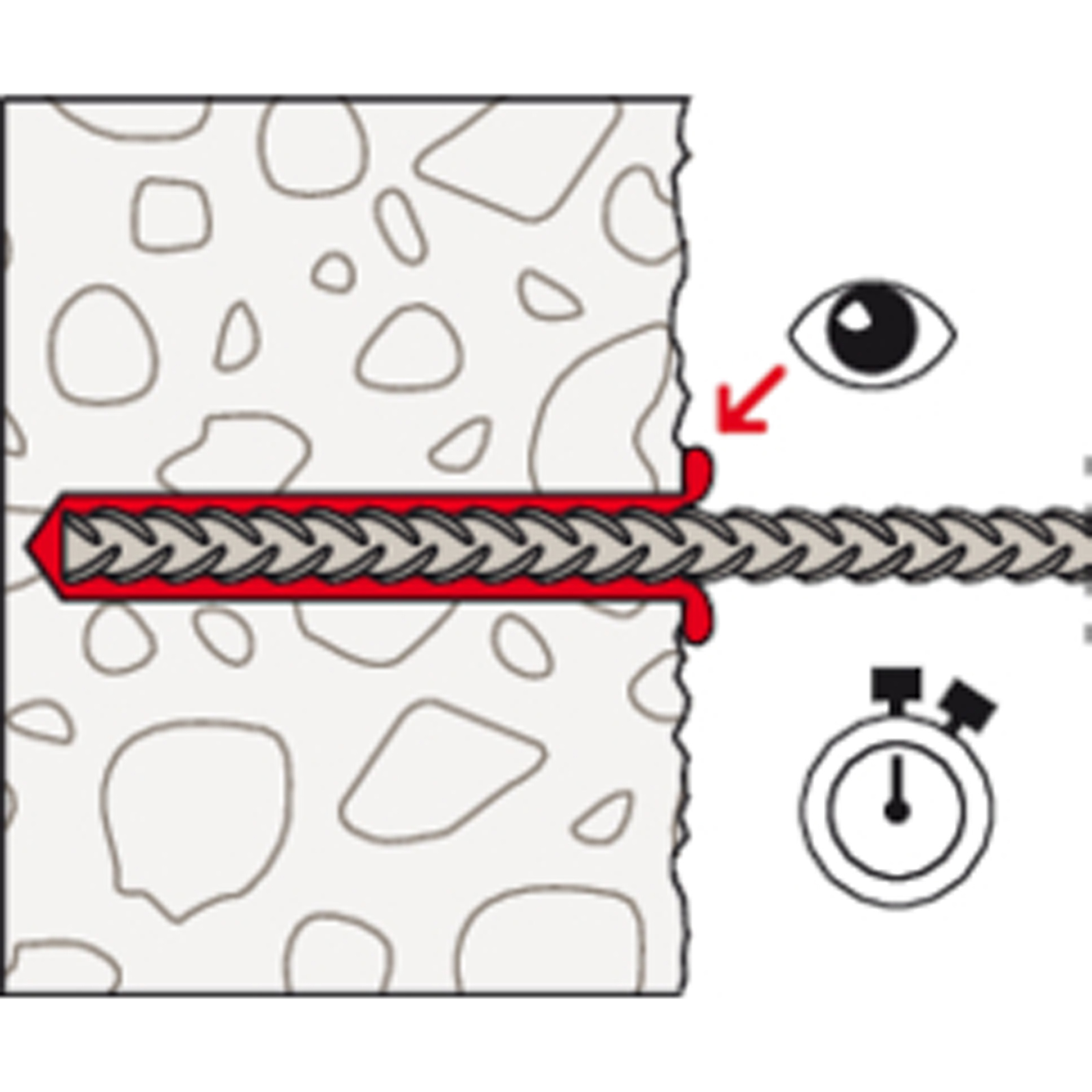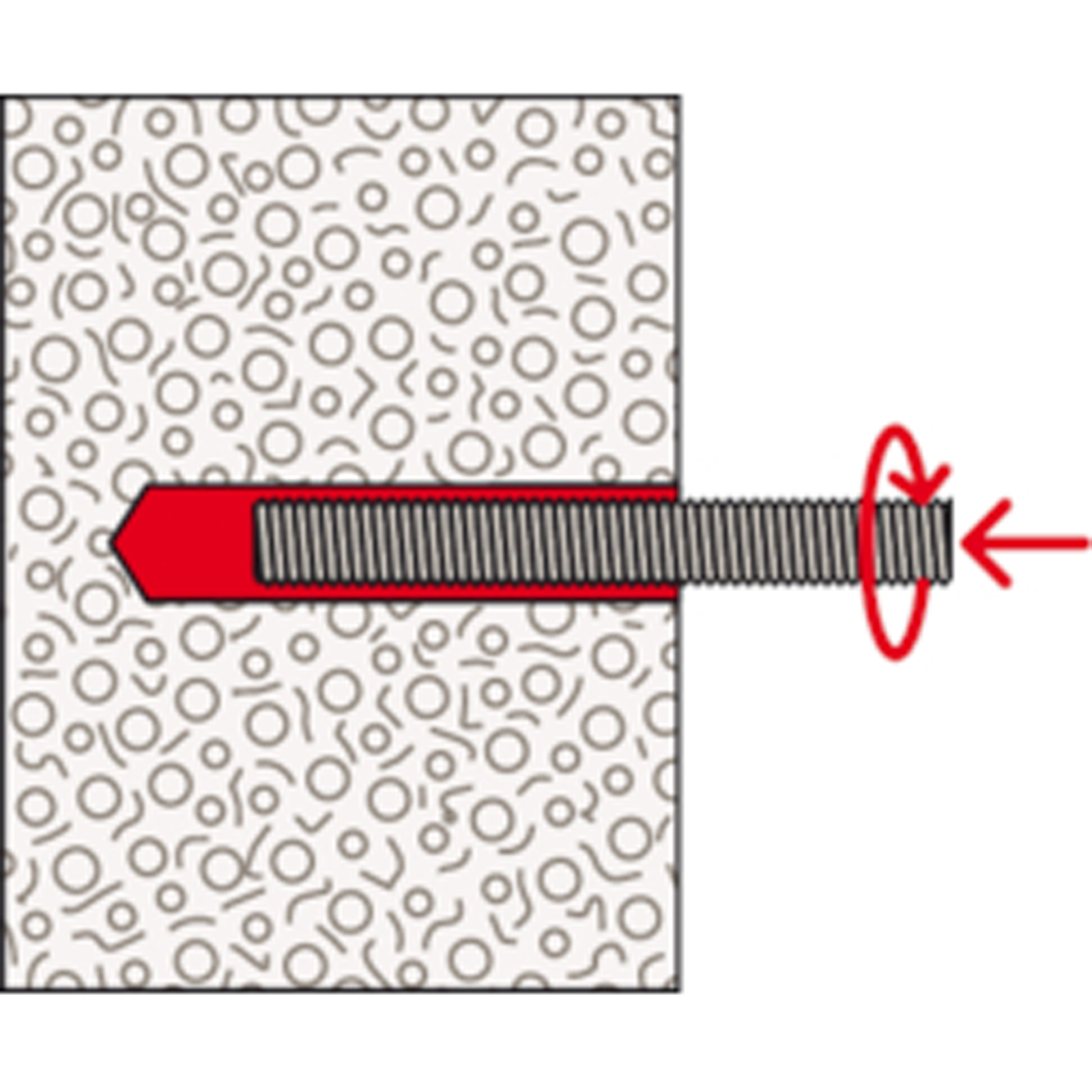 - Der Mörtel verklebt das Befestigungselement vollflächig mit der Bohrlochwand und dichtet das Bohrloch ab.