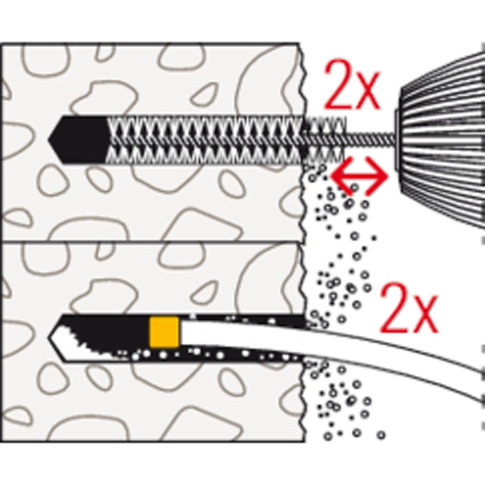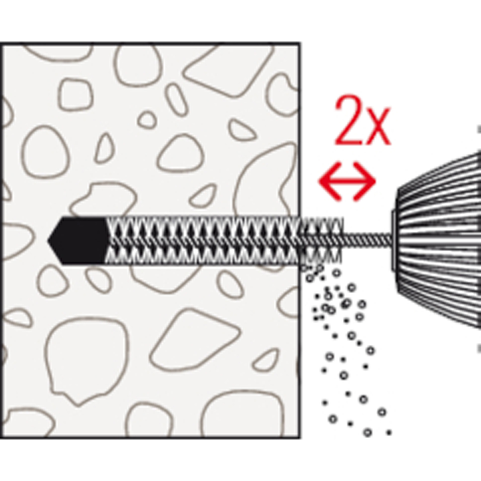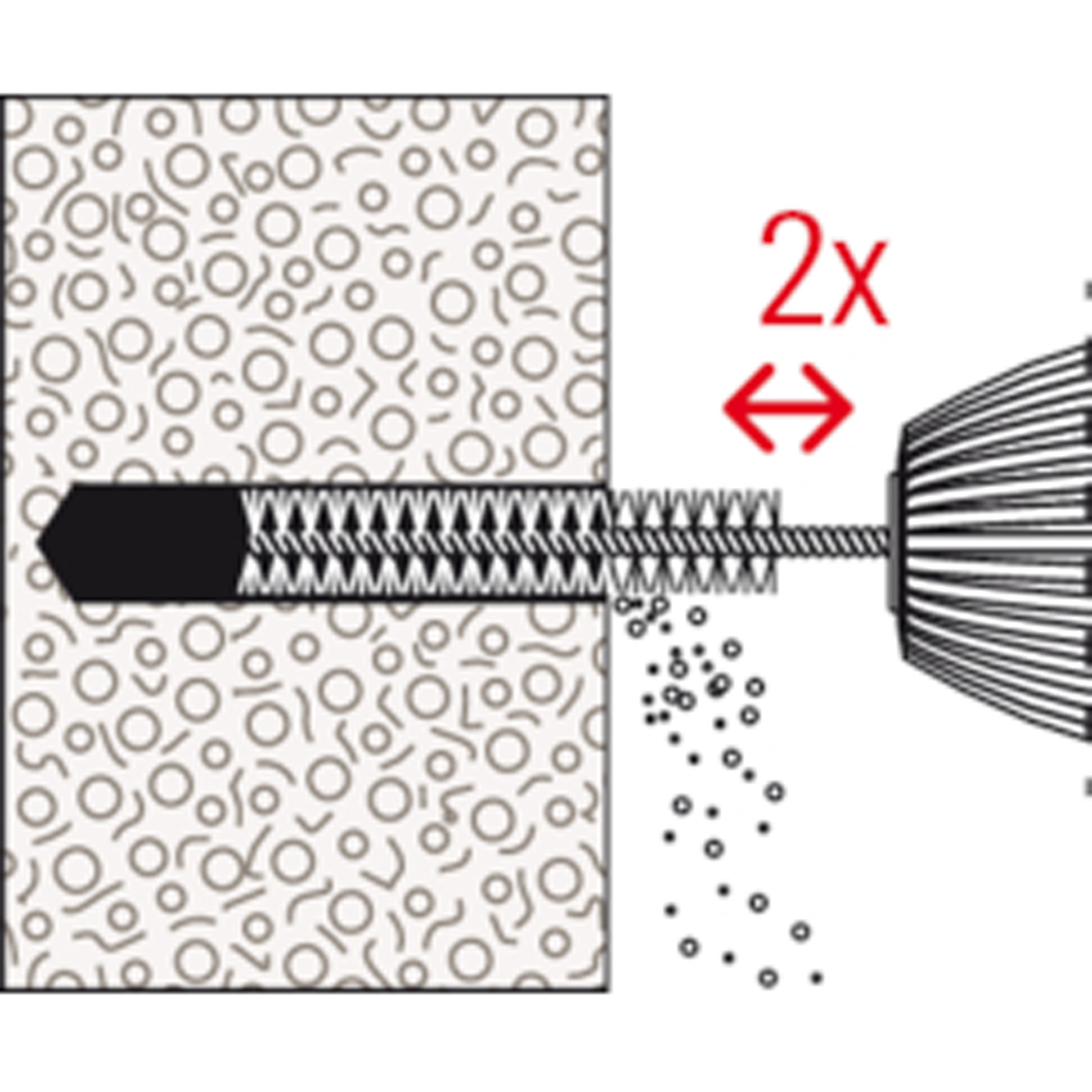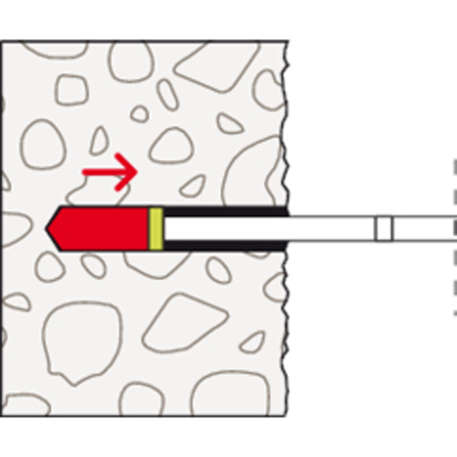 - Der Mörtel verklebt das Befestigungselement vollflächig mit der Bohrlochwand und dichtet das Bohrloch ab.