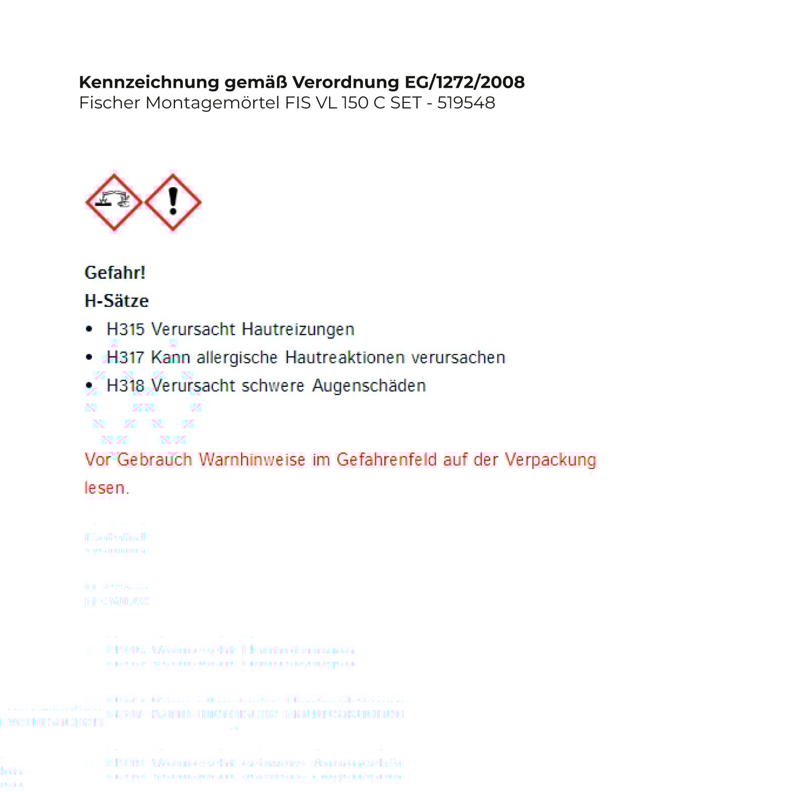 - 1x Fischer Montagemörtel FIS VL 150 C SET