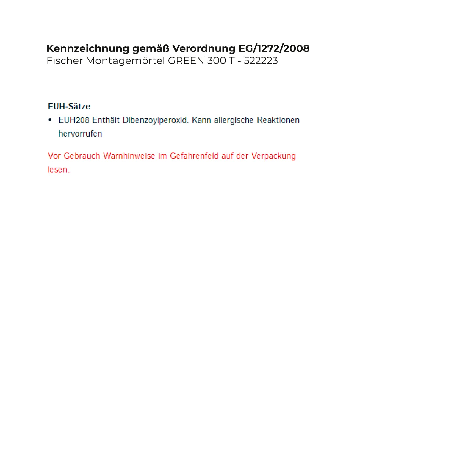 - EUH208 Enthält Dibenzoylperoxid. Kann allergische Reaktionen hervorrufen