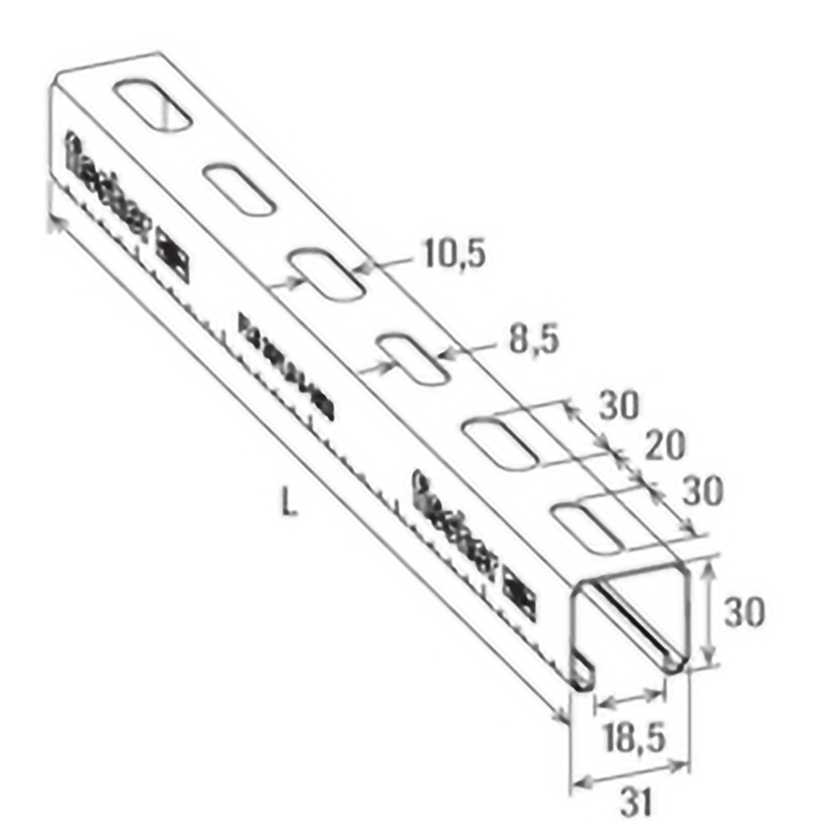 - Die alternierenden Langlöcher in der Montageschiene ermöglichen die optimierte Befestigung an den Untergrund.