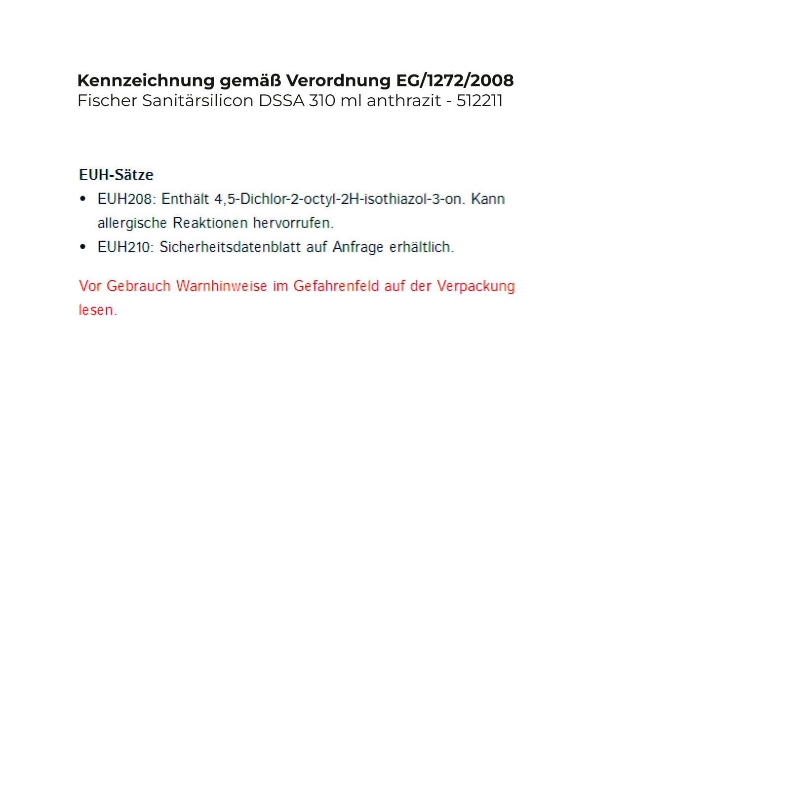 - EUH208: Enthält 4,5-Dichlor-2-octyl-2H-isothiazol-3-on. Kann allergische Reaktionen hervorrufen.