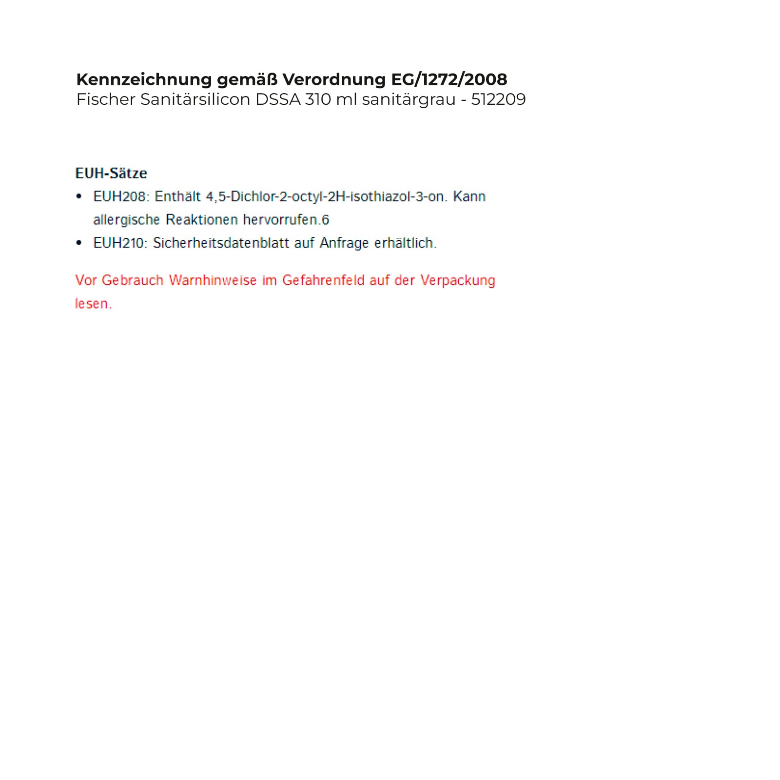 - EUH208: Enthält 4,5-Dichlor-2-octyl-2H-isothiazol-3-on. Kann allergische Reaktionen hervorrufen.6