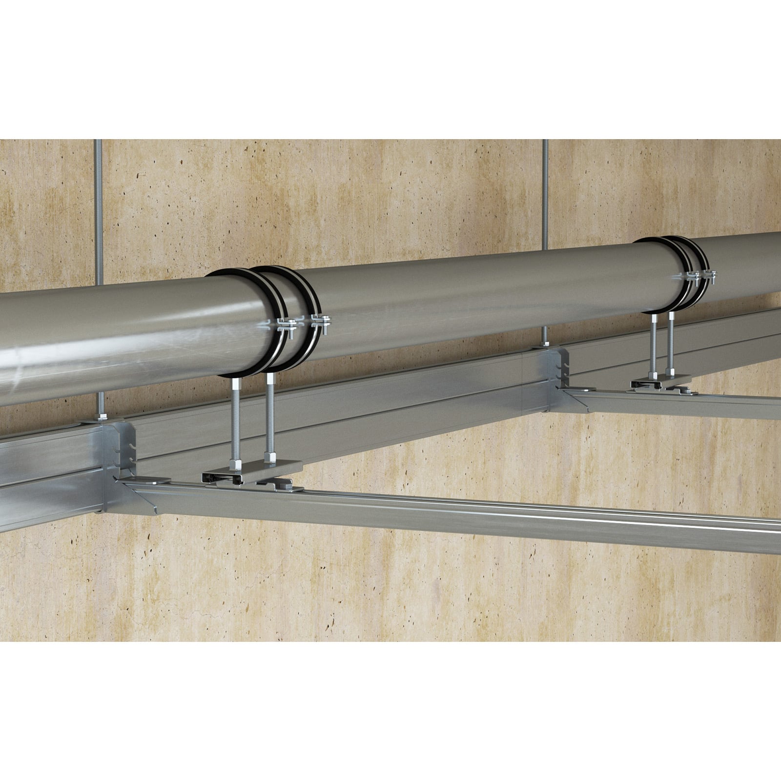 - Das flexible Kombi-Doppelgewinde erlaubt die Aufnahme von Rohrschellen diverser Größen.