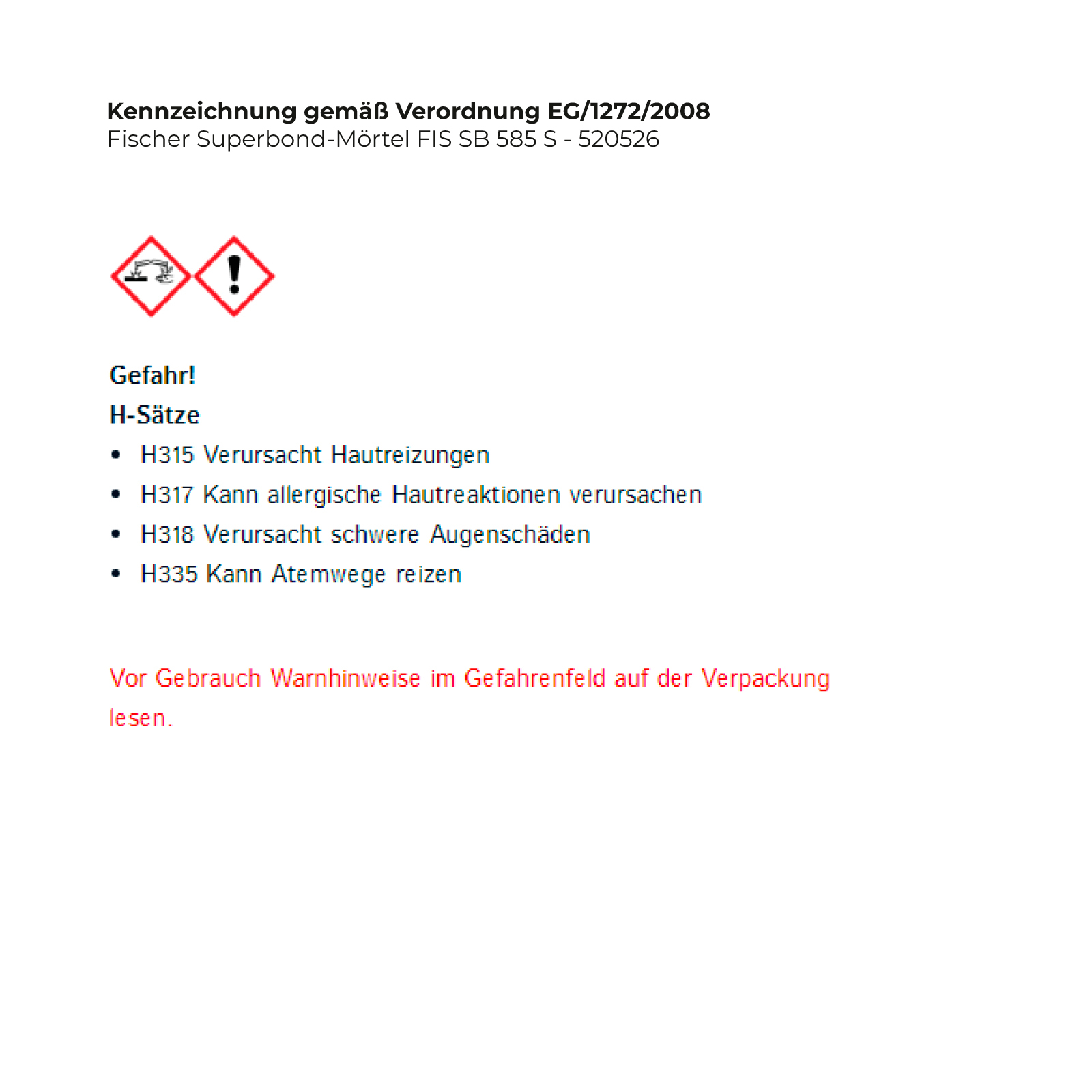 - 1x Fischer Superbond-Mörtel FIS SB 585 S