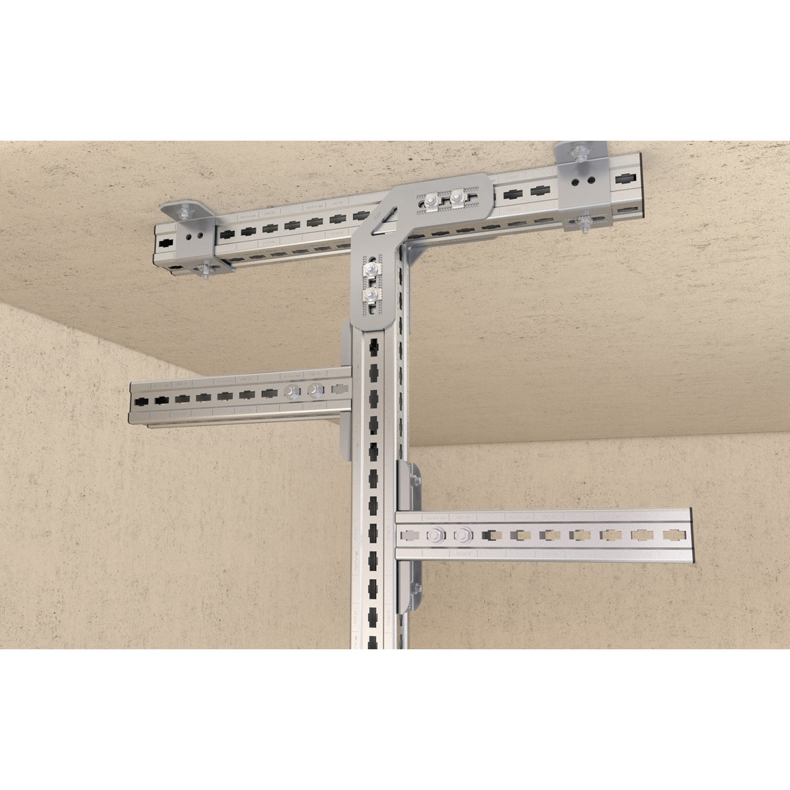 - Die Bauformen des Verbindungselements FMUF gewährleistet die Befestigung der Montageprofile FMP untereinander und zum Untergrund und ermöglicht ein einfaches Befestigen.