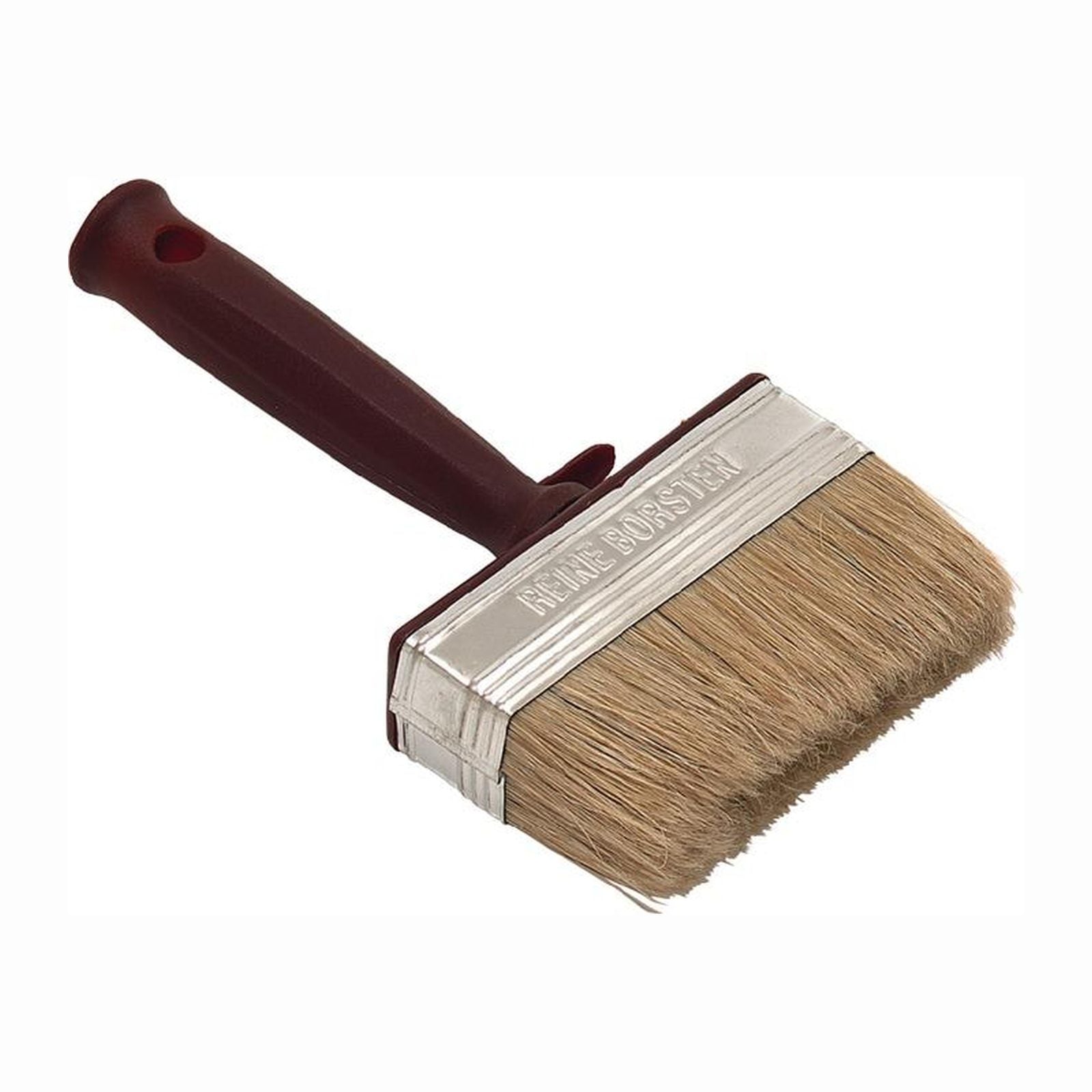 Merkmale Zwinge: Weißblechzwinge Borstenlänge: 40mm Qualität: Industrie Bestückung: helle Mischborste Zubehör: Eimerhaken Rücken: Kunststoffrücken Rückenbreite: 30 mm Rückenlänge: 120 mm