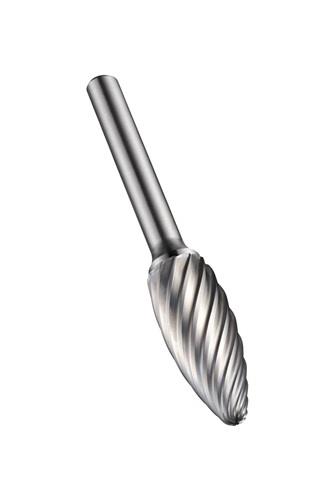 Flemmanförmiger Frässtift (Form H) · Durchmesser 8mm mit 19mm Schnittlänge · 64mm Gesamtlänge und 6mm Schaft · VHM mit gehärtetem Stahlschaft und blanker Oberfläche · VA einseitigem Schnitt mit mittlerer Zahnteilung zur Rundkantenkonturierung und Schweißvorbereitung in Edelstahl