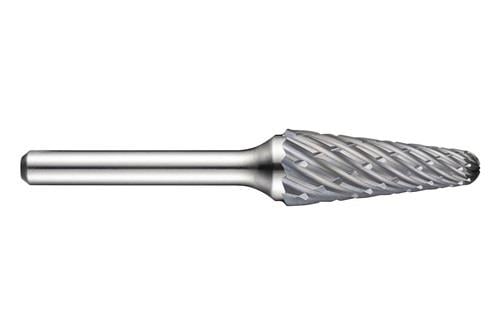 Kugelkegel-Frässtift (Form L) · Durchmesser 10mm mit 20mm Schnittlänge · 65mm Gesamtlänge und 6mm Schaft · VHM mit gehärtetem Stahlschaft und blanker Oberfläche · ST einseitigem Schnitt mit Spanbrecher und mittlerer Zahnteilung zum Vergrößern von Löchern · Abrunden von Kanten und Oberflächenveredeln in engen Winkeln oder anderen schwer zugänglichen Bereichen in Stahl und Stahlguss