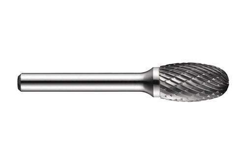 Ovaler Frässtift (Form E) · Durchmesser 16mm mit 25mm Schnittlänge · 70mm Gesamtlänge und 6mm Schaft · VHM mit gehärtetem Stahlschaft und blanker Oberfläche · DC doppelseitigem Schnitt mit enger Zahnteilung zur runden Kantenformung in Stahl und Stahlguss · Edelstahl · Gusseisen · Kupfer oder Kupferlegierungen · Hochwarmfeste Legierungen · gehärtete Materialien