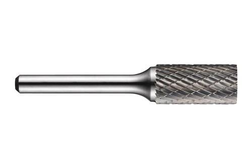 Zylindrischer Frässtift ohne Stirnverzahnung (Form A) · Durchmesser 3mm mit 14mm Schnittlänge · 38mm Gesamtlänge und 3mm Schaft · Vollhartmetall mit blanker Oberfläche · DC doppelseitigem Schnitt mit enger Zahnteilung zum bearbeiten von Oberflächen in Stahl und Stahlguss · Edelstahl · Gusseisen · Kupfer oder Kupferlegierungen · Hochwarmfeste Legierungen · gehärtete Materialien