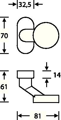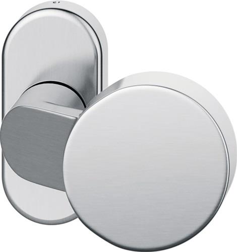 - Rahmentür-Knopf schräg, auf ovaler Rosette mit unsichtbarer Befestigung für Senkschrauben M5 (Schraublochabstand 50 mm) mit Hochhaltefeder