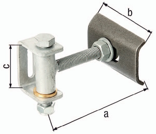 - bestehend aus U-Bügel mit Langloch zum Anschrauben an Pfosten