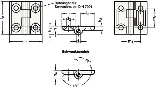Ganter Norm Scharnier GN 237 Höhe 40 mm Breite 40 mm