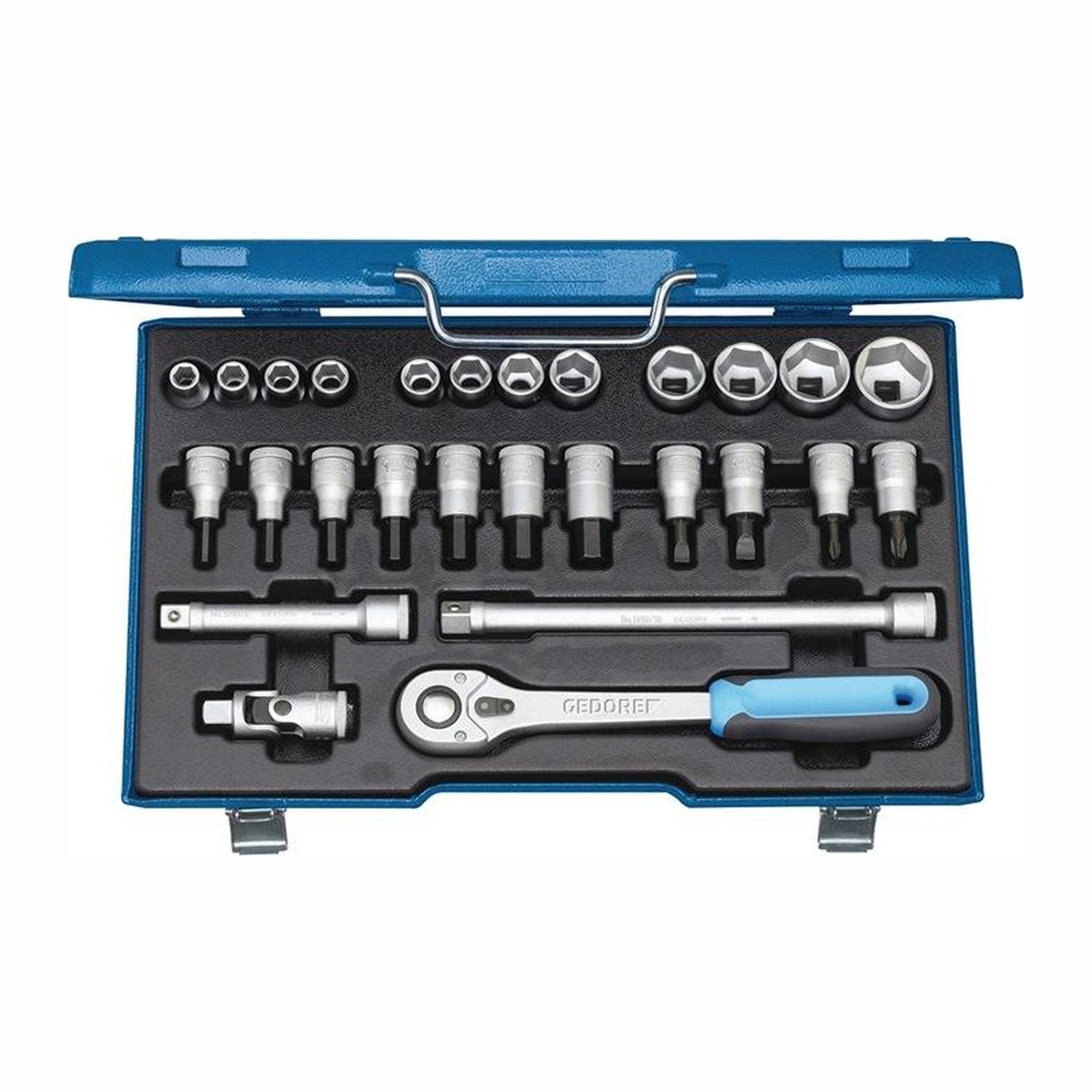 - 1x Gedore Steckschlüsselsatz 19 IMU-10 27tlg. 1/2″ SW 10-30 mm Anzahl Zähne 32 6-kant bestehend aus: