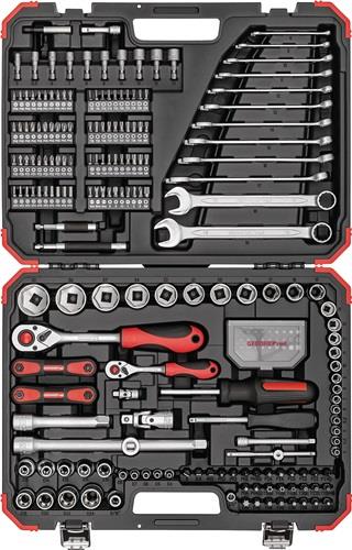 - 232 Werkzeuge (1/4″ + 1/2″) für die unterschiedlichen Schraubfälle, übersichtlich sortiert im Gedore red Kunststoffkoffer garantieren den schnellen Zugriff.