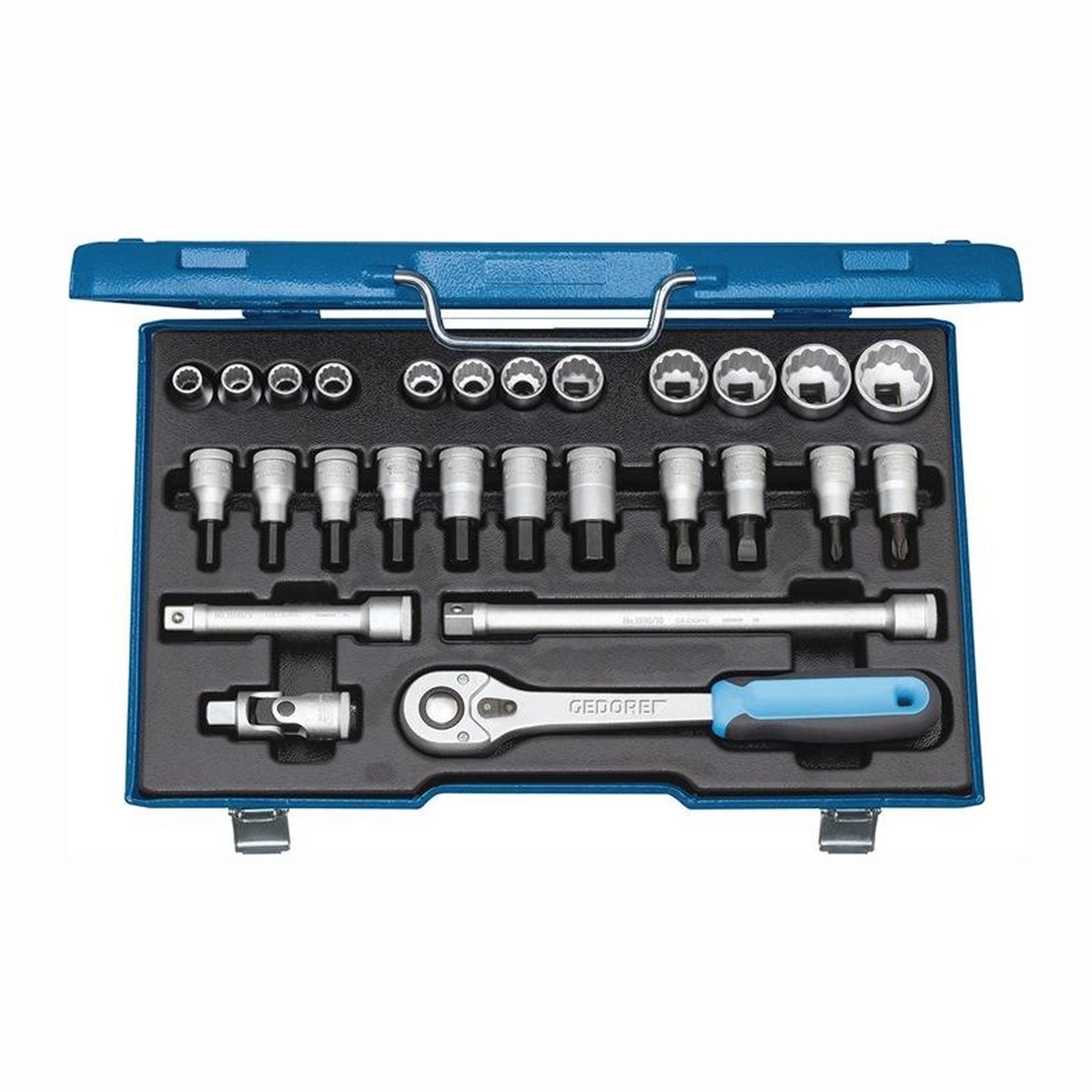 - 1x Gedore Steckschlüsselsatz D 19 IMU-10 27tlg. 1/2" SW 10-30 mm Anzahl Zähne 32 12-kant bestehend aus: