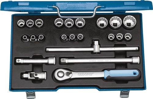 - 1x Gedore Steckschlüsselsatz D19 EMU-20 23tlg. 1/2″ SW 8-32 mm Anzahl Zähne 60 12-kant bestehend aus:
