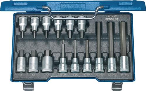 - 1x Gedore Steckschlüsselsatz IN 19 LKM 15tlg. 1/2" SW 5-17 mm für Innen-6-kant bestehend aus: