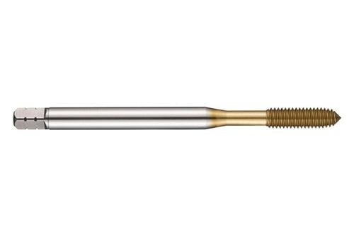 Gewindeformer · Anschnittform C mit 2-3xP Gewindeanschnitt · ISO-Metrisches Gewinde M4 mit 0.70 mm Steigung und 6GX Toleranzklasse · Abmessungen nach DIN 2174 Standard mit 4.5mm Schaft und 3.4mm Vierkantantrieb · HSSE-Co mit TiN Beschichtung 3xD Durchgangs- und Sacklochgewinde in Baustahl · Kohlenstoffstahl und legierter · Ferritischer · Martensitischer und Austenitischer Edelstahl und Reinaluminium oder Aluminiumguss Weitere technische Eigenschaften: · Gewindelänge: 12mm · Schaft-Ø: 4.5