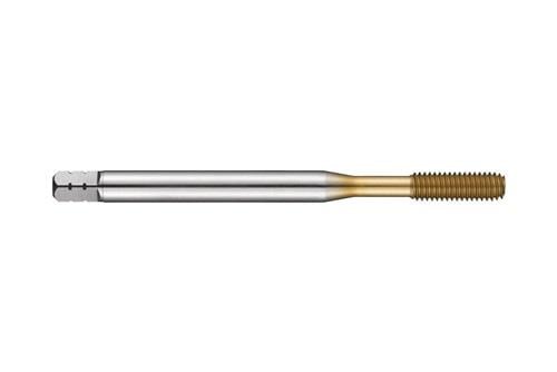 Gewindeformer · Anschnittform E mit 1.5-2xP Gewindeanschnitt · ISO-Metrisches Gewinde M5 mit 0.80 mm Steigung und 6HX Toleranzklasse · Abmessungen nach DIN 2174 Standard mit 6.0mm Schaft und 4.9mm Vierkantantrieb · HSSE-Co mit TiN Beschichtung 3xD Sacklochgewinde in Baustahl · Kohlenstoffstahl und legierter · Ferritischer · Martensitischer und Austenitischer Edelstahl und Reinaluminium oder Aluminiumguss Weitere technische Eigenschaften: · Gewindelänge: 13mm · Schaft-Ø: 6