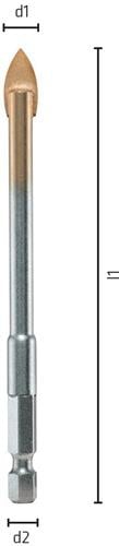 Hartmetall · zum Bohren von Glas, Flaschen, Porzellan, Fliesen usw. · nicht geeignet zum Schlagbohren · 1/4 Zoll Weitere technische Eigenschaften: · Einsatzbereich: Zum Bohren von Glas, Flaschen, Porzellan, Fliesen usw. Nicht geeignet zum Schlagbohren. · Schaftausführung: SECHSKANT