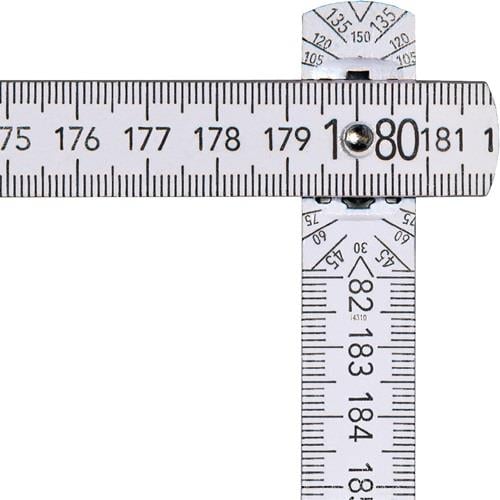 aus Buchenholz · Gliederstärke 3,0 mm · Gliederhöhe 16 mm · verdeckte durchgenietete Gelenkfedern aus standfestem Kunststoff · Winkeleinteilung in der Gelenkverbindung des ersten Maßstabgliedes · weiß lackiert · EG-Genauigkeitsklasse III Weitere technische Eigenschaften: · Breite: 16mm · Gliederstärke: 3mm · Farbe: weiß · Gliederanzahl: 10 · Genauigkeit: EG III