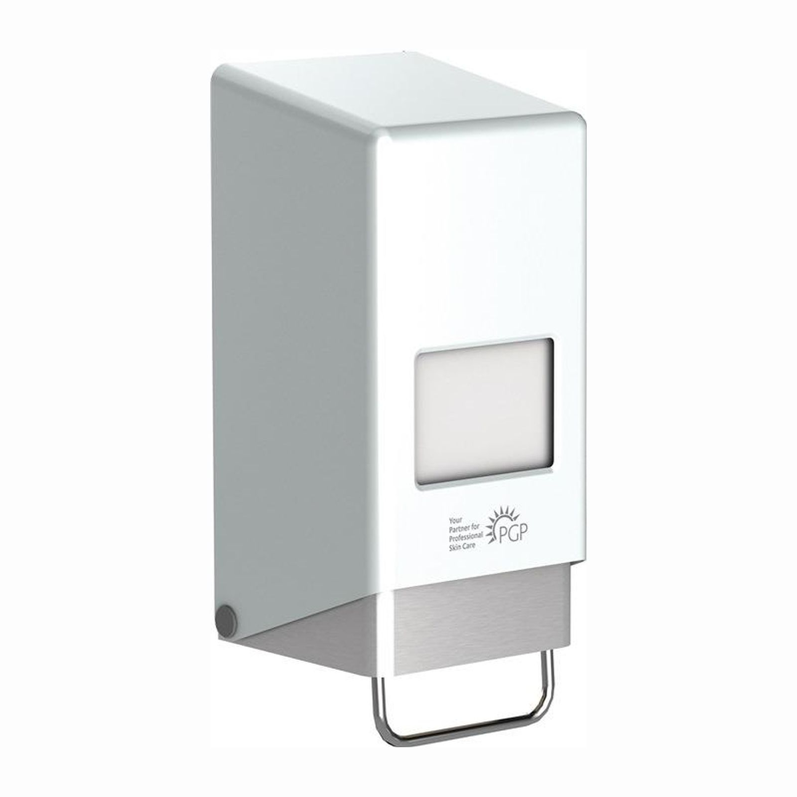 Gehäuse weiß, Stahlblech pulverbeschichtet mit Sichtfenster Spenderhebel aus Edelstahl hygienisches und umweltfreundliches Spendersystem Befüllung ist nicht im Lieferumfang enthalten!