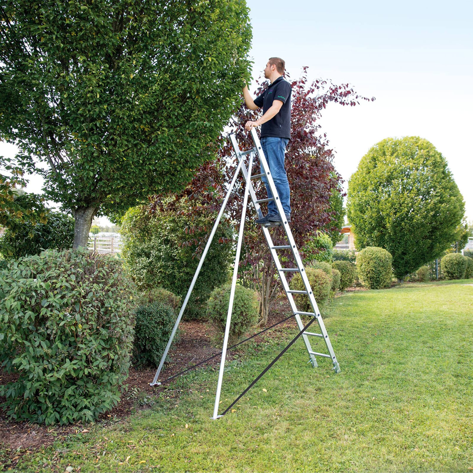 - Zum Anbau an Anlege- und Schiebeleitern für sicheren Stand bei allen Arbeiten rund um den Baum. Werksseitiger Anbau gegen Mehrpreis