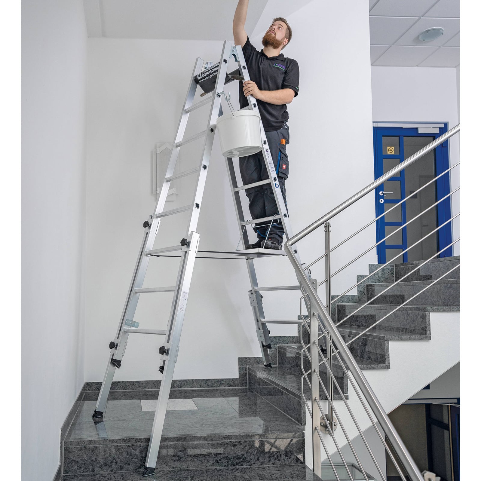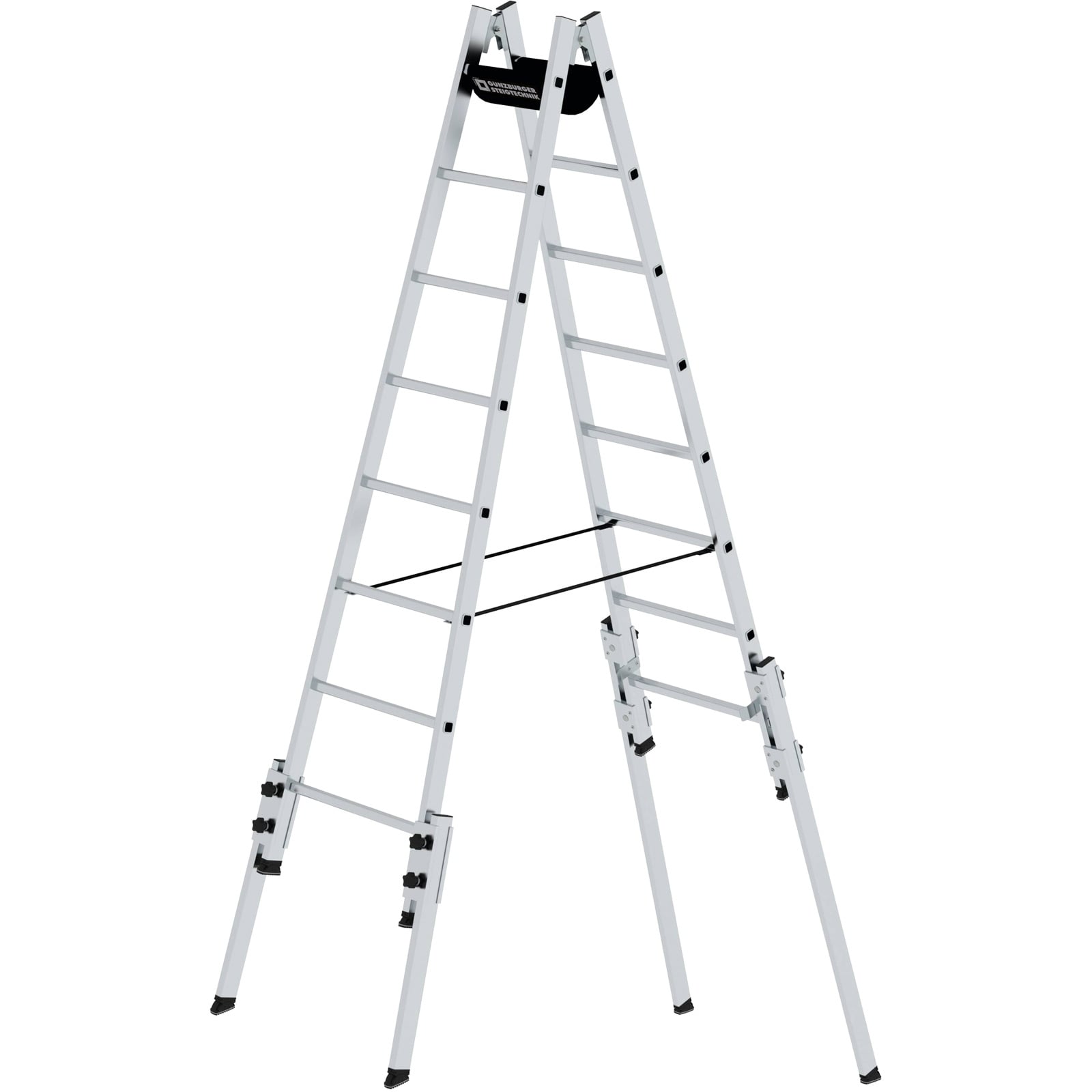 1x Günzburger Steigtechnik Aluminium Stehleiter 2x8 Sprossen treppengängig