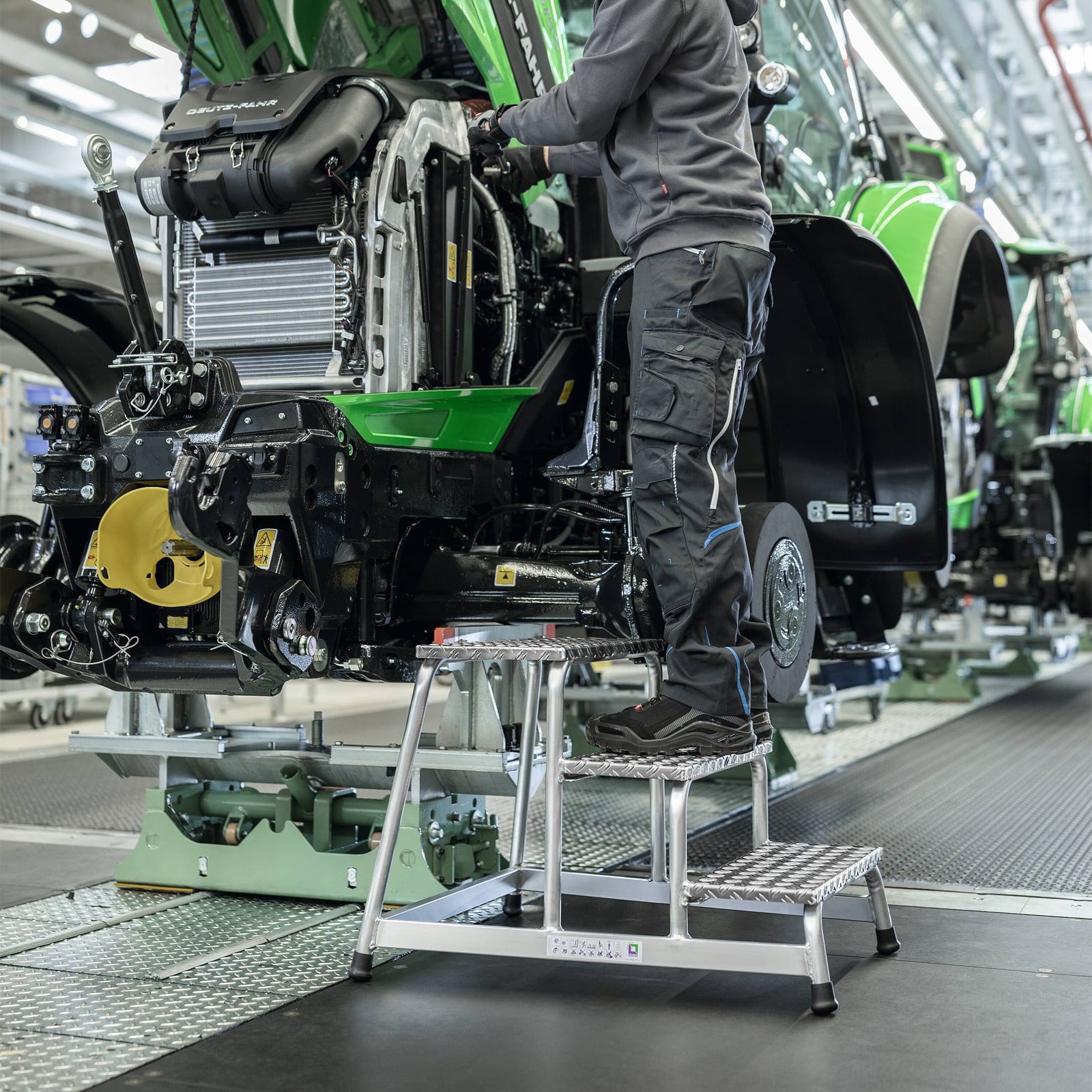 - Tiefe Stufen und große Trittfläche aus Aluminium-Warzenblech für einen sicheren Stand