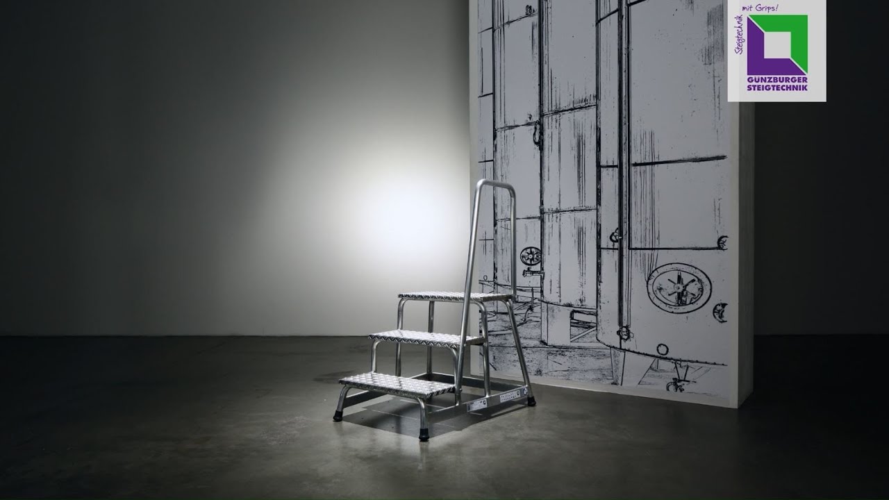 "Günzburger Steigtechnik Arbeitspodest starr Stahl-Gitterrost mit Rollen 4 Stufen - 051020"