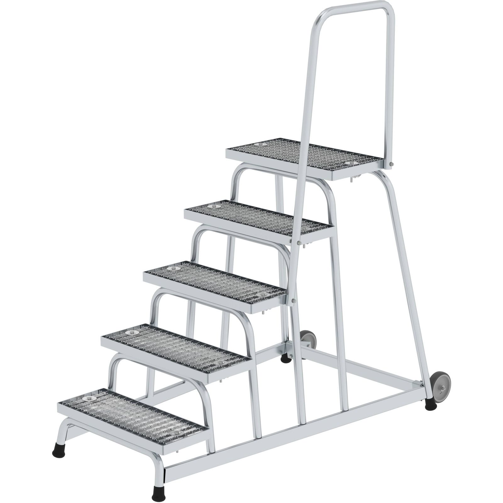"Günzburger Steigtechnik Arbeitspodest starr Stahl-Gitterrost mit Rollen und Handlauf 5 Stufen - 051025"