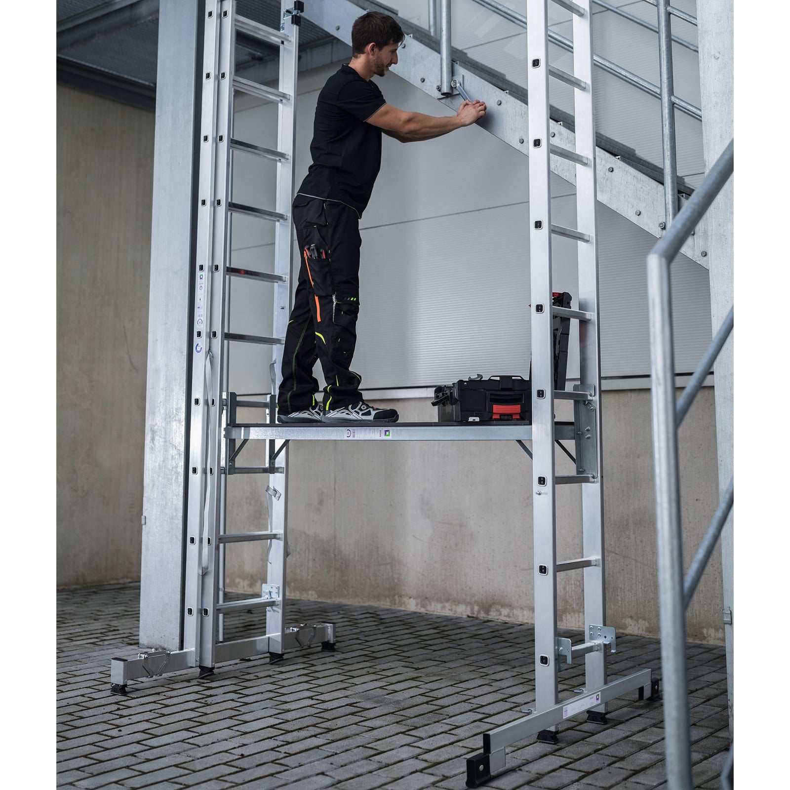 - Nur möglich mit Sprossen-Mehrzweckleiter 3tlg. mit nivello-Traverse und Wandlaufrollen und Mehrzweckleiter 3tlg. mit nivello-Traverse