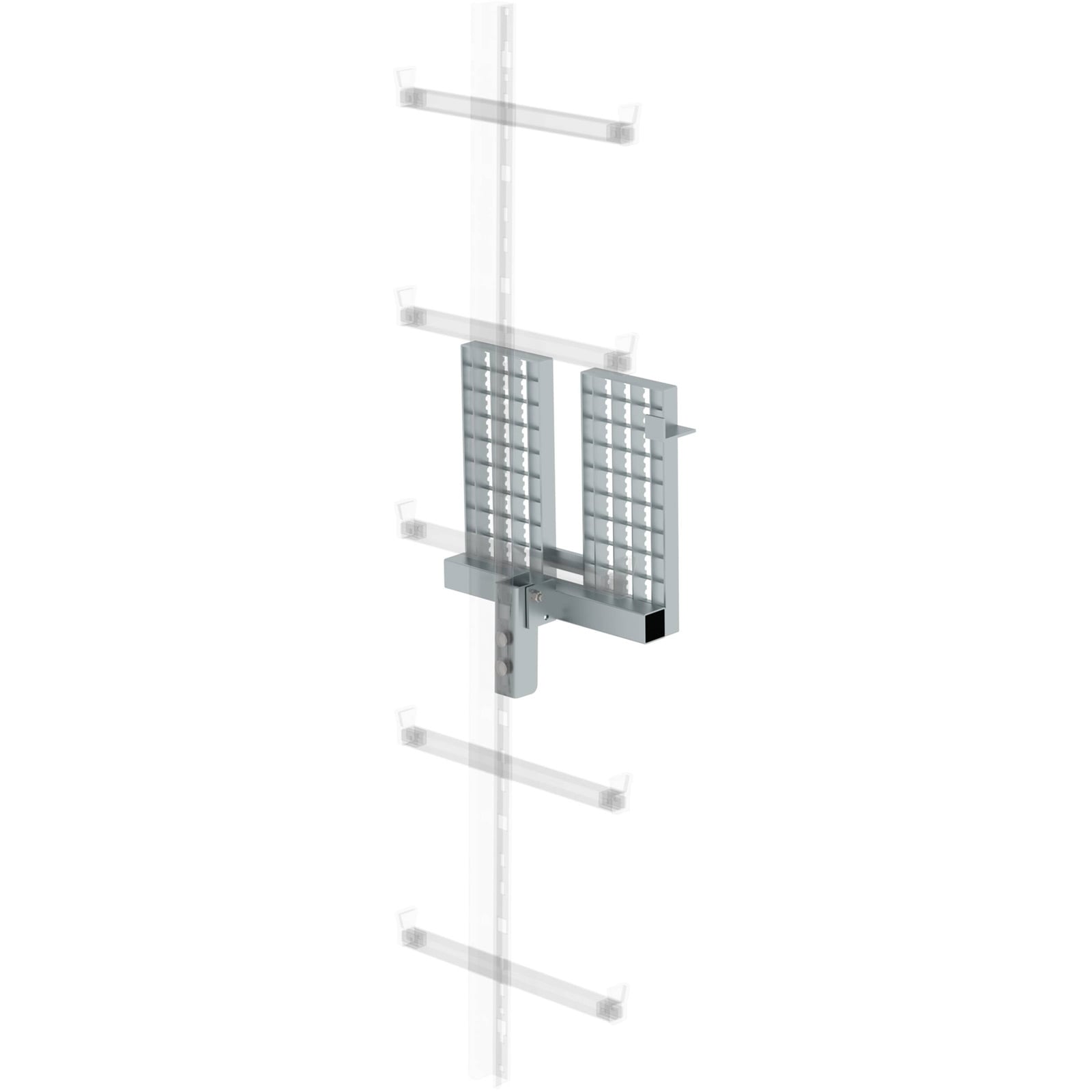 - Befestigung direkt an mittiger Fallschutzschiene und Einholmleitern