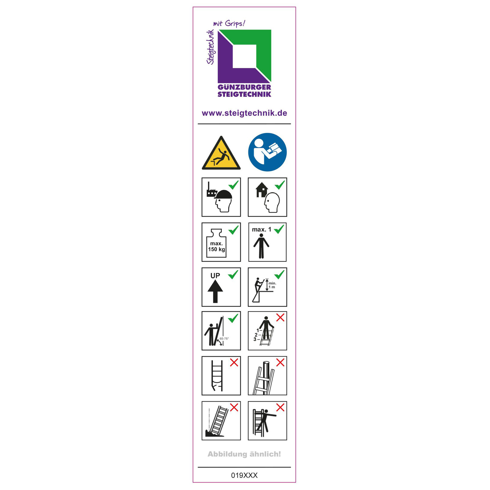 • 1x Günzburger Steigtechnik 20x Hinweis-Aufkleber für Schiebe- und Seilzugleiter unter 3 m