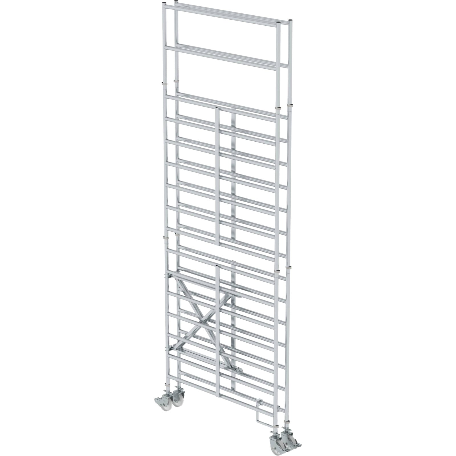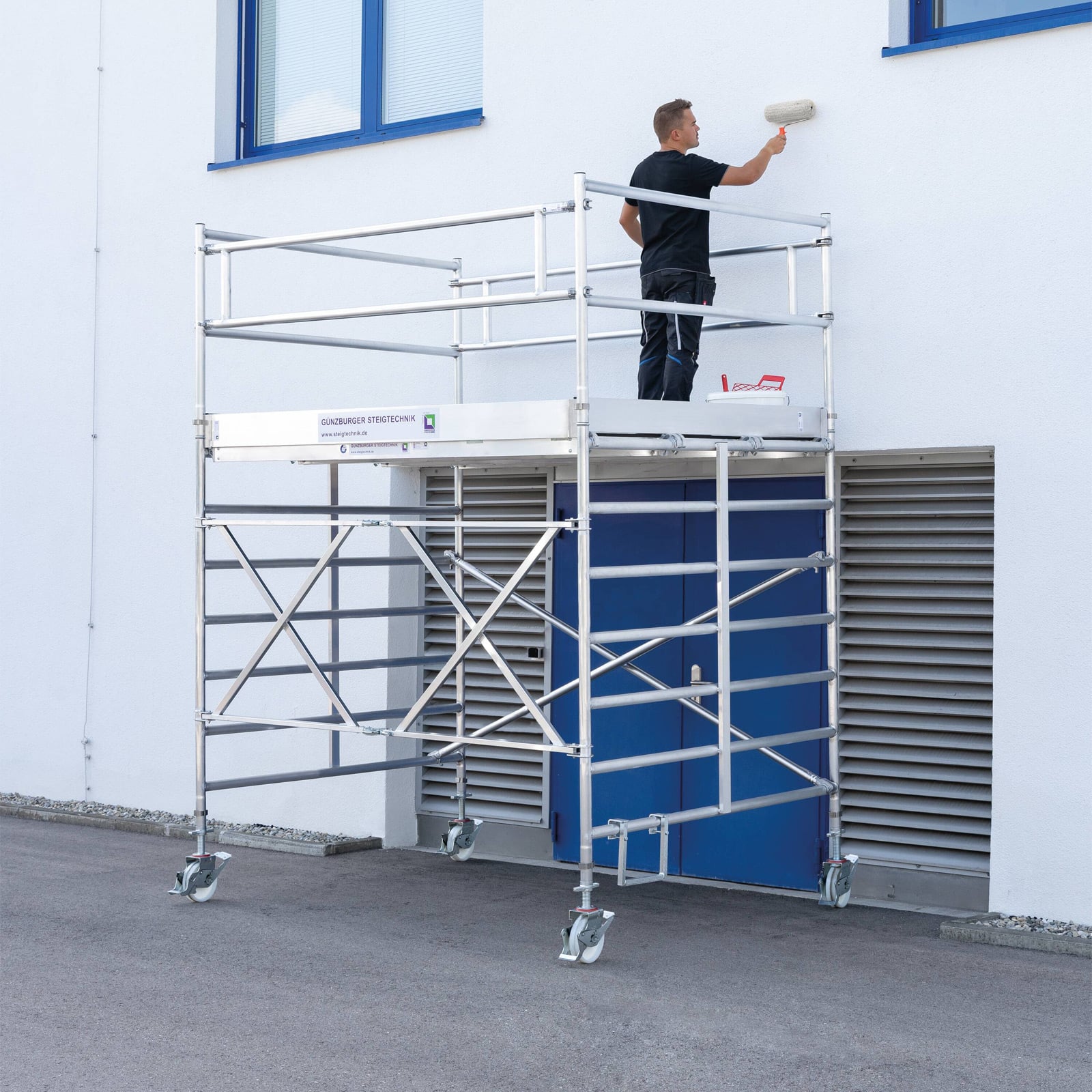 - Rollgerüst aus stabilem Aluminium-Rundrohr mit geschweißten Rahmenteilen