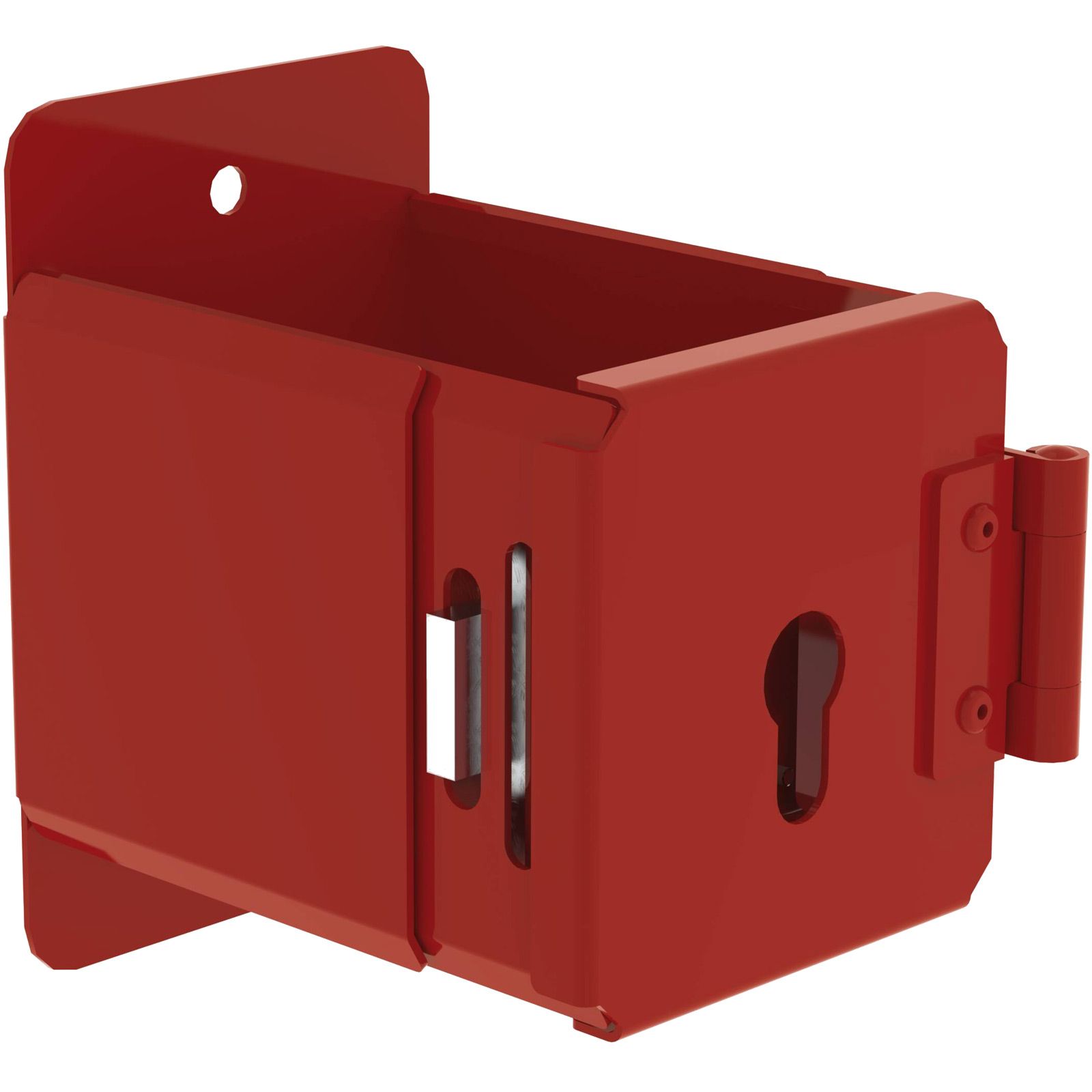 - Ausführung in Stahlblech verzinkt, anschließend pulverbeschichtet in RAL 3000 Rot, zur Wandmontage.