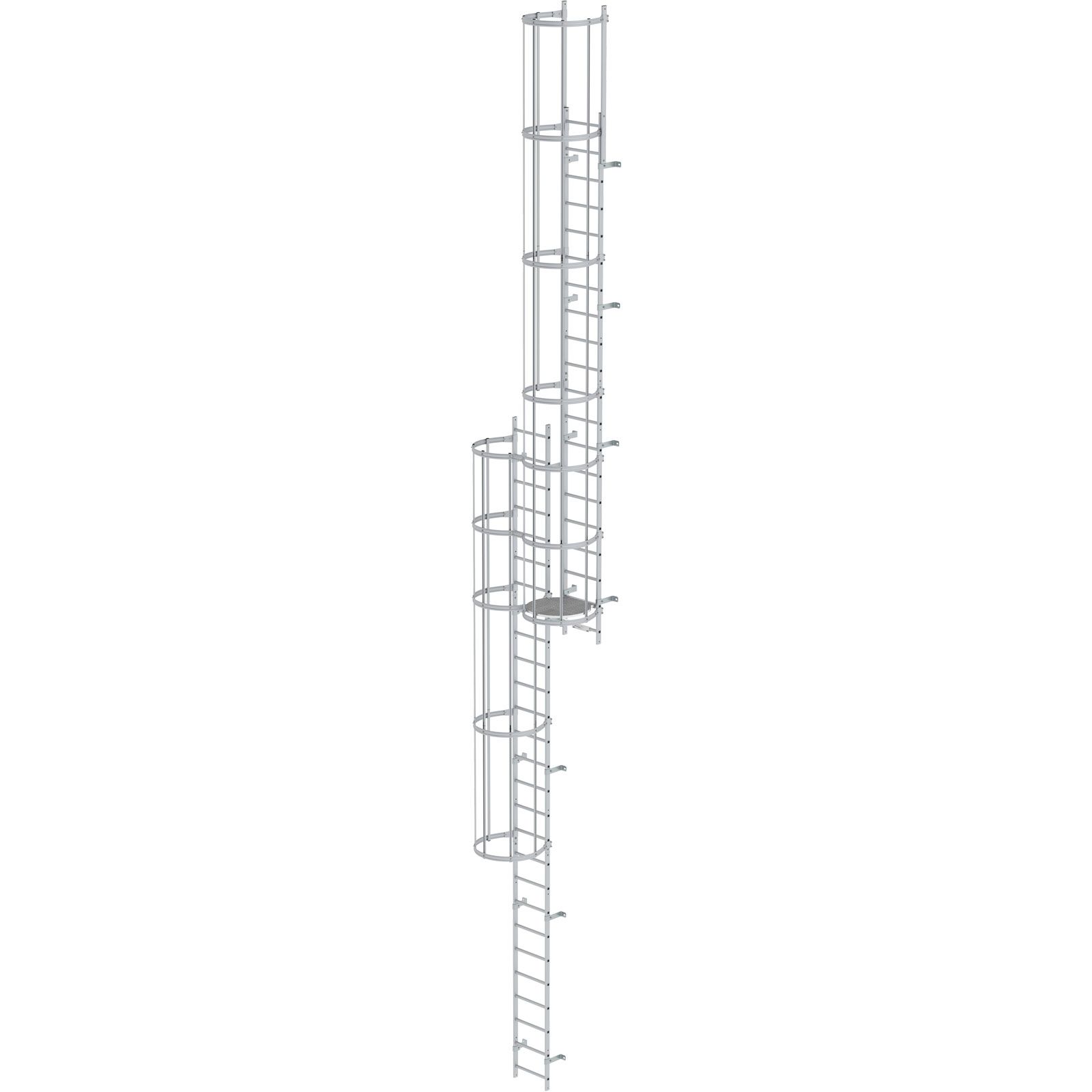 1x Günzburger Steigtechnik mehrzügige Steigleiter mit Rückenschutz (Notleiter) Aluminium eloxiert 12,12 m