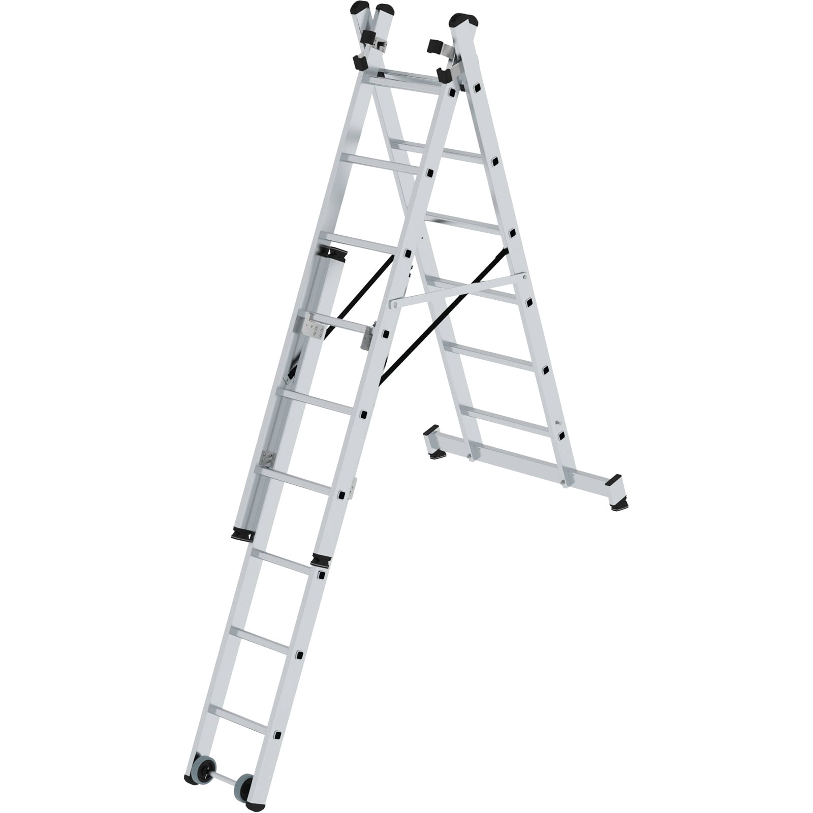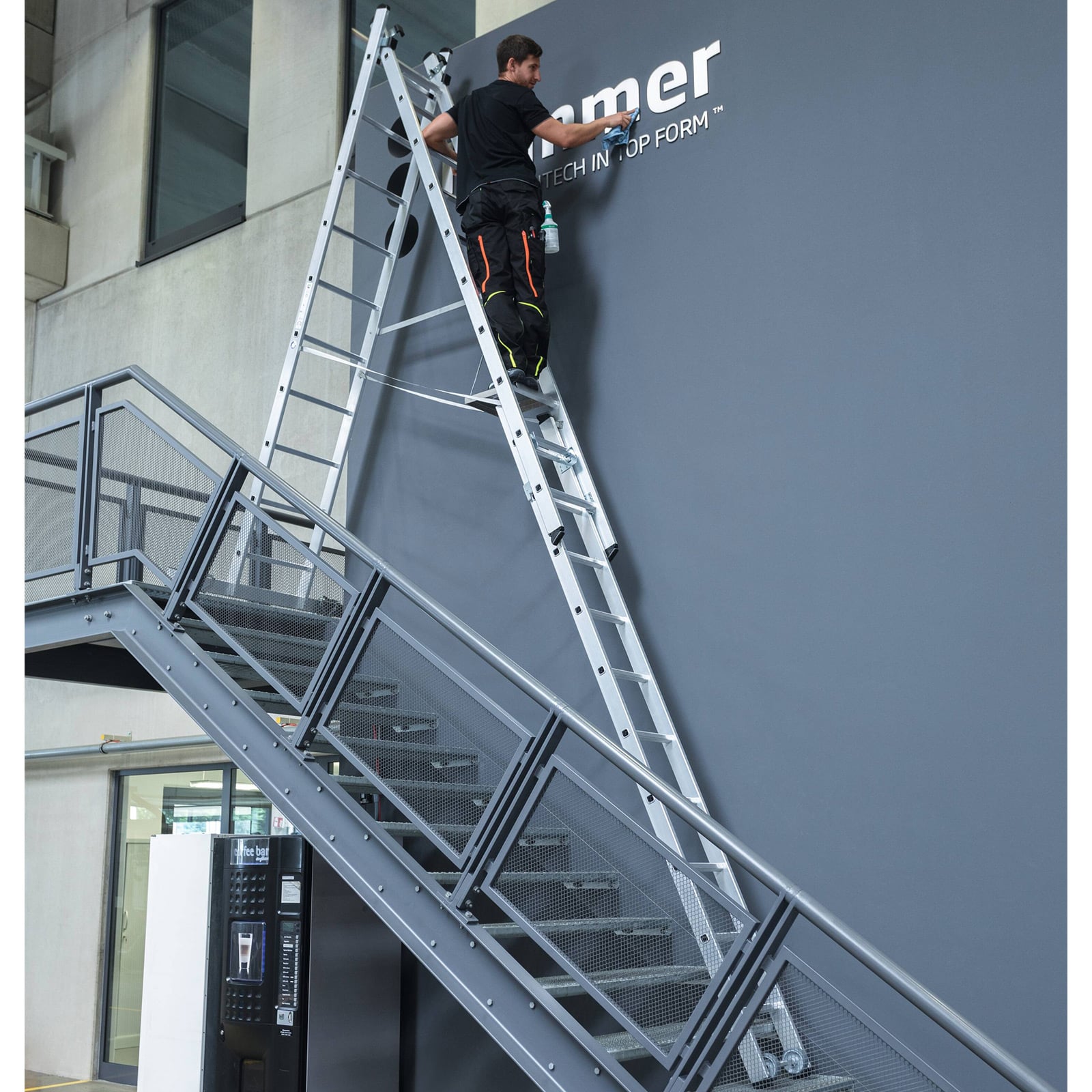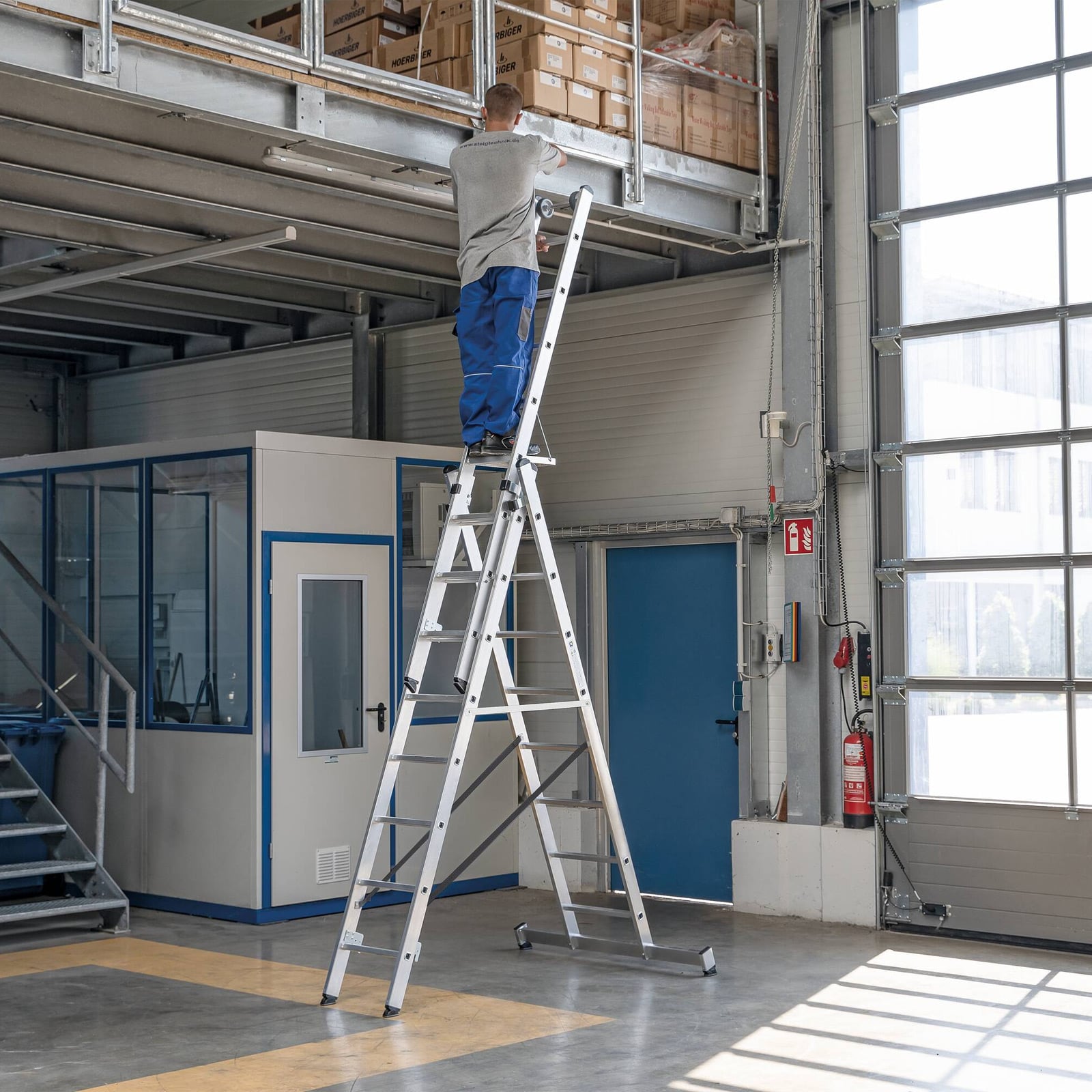 - 1x Günzburger Steigtechnik Mehrzweckleiter 3tlg. mit nivello-Traverse und Wandlaufrollen 3 x 6 Sprossen