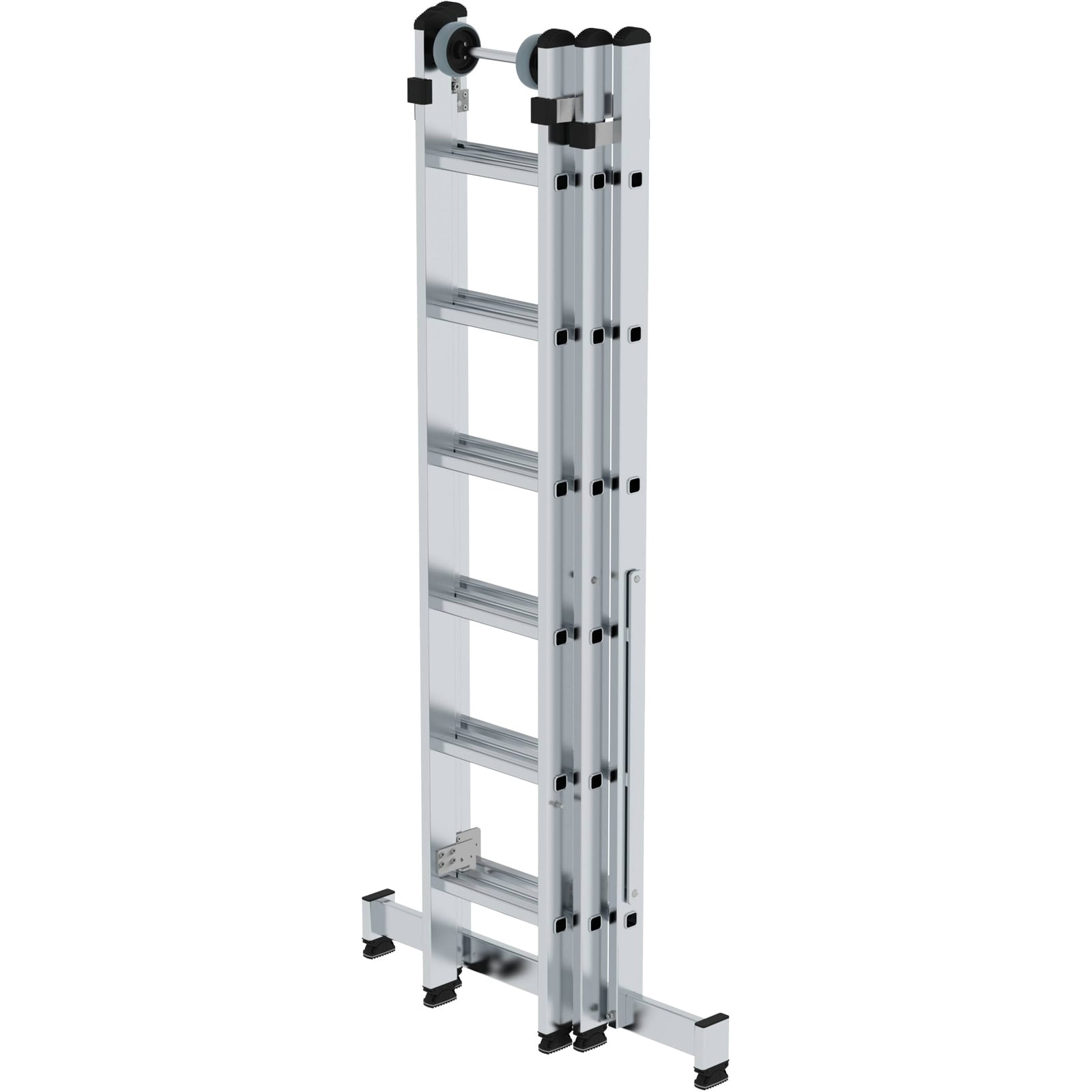"Günzburger Steigtechnik Mehrzweckleiter 3tlg. mit nivello-Traverse und Wandlaufrollen 3 x 6 Sprossen - 033306"