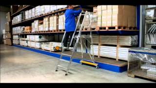 1x Günzburger Steigtechnik Plattformleiter FlexxStep 5 Sprossen mit Teleskopaufsatz 3 Sprossen