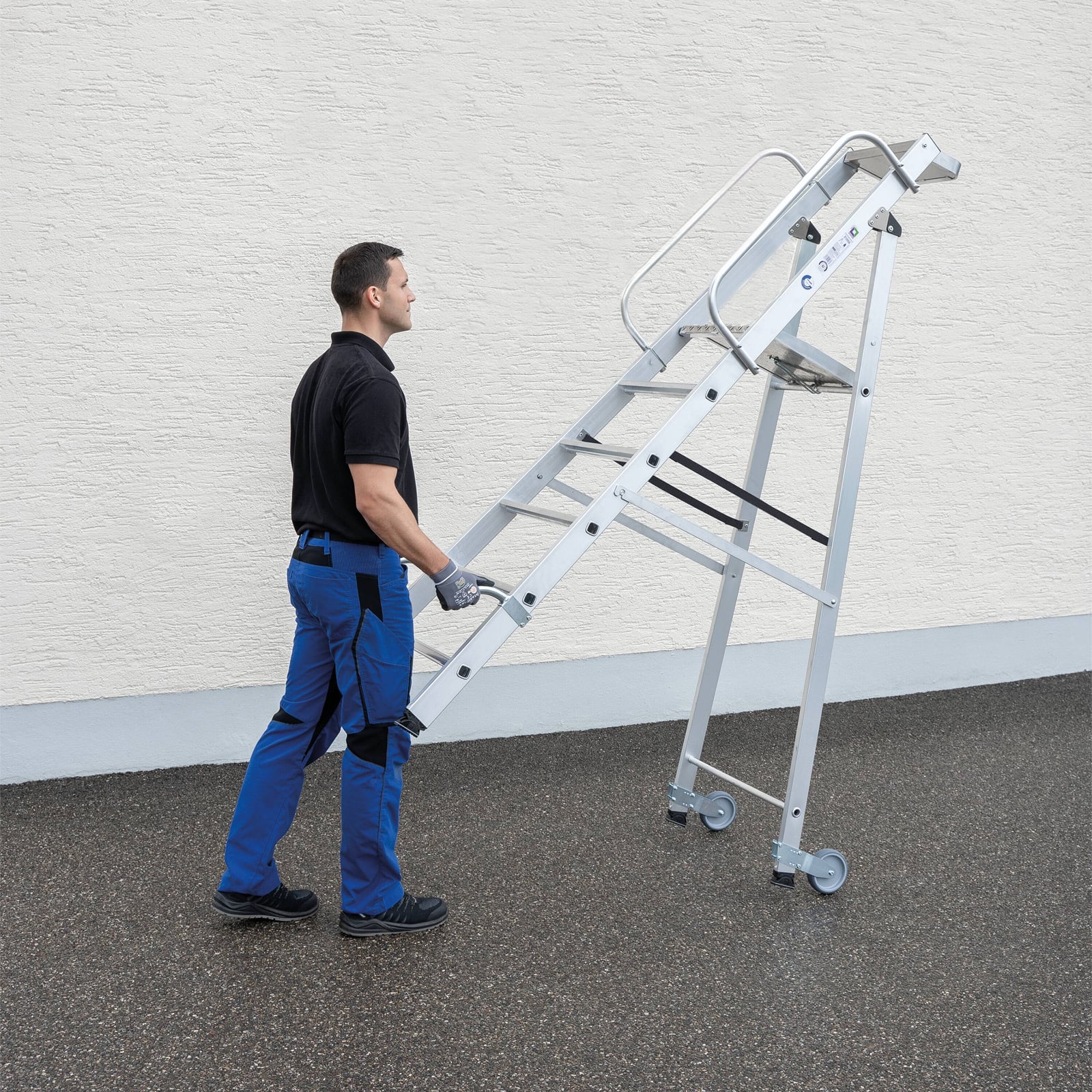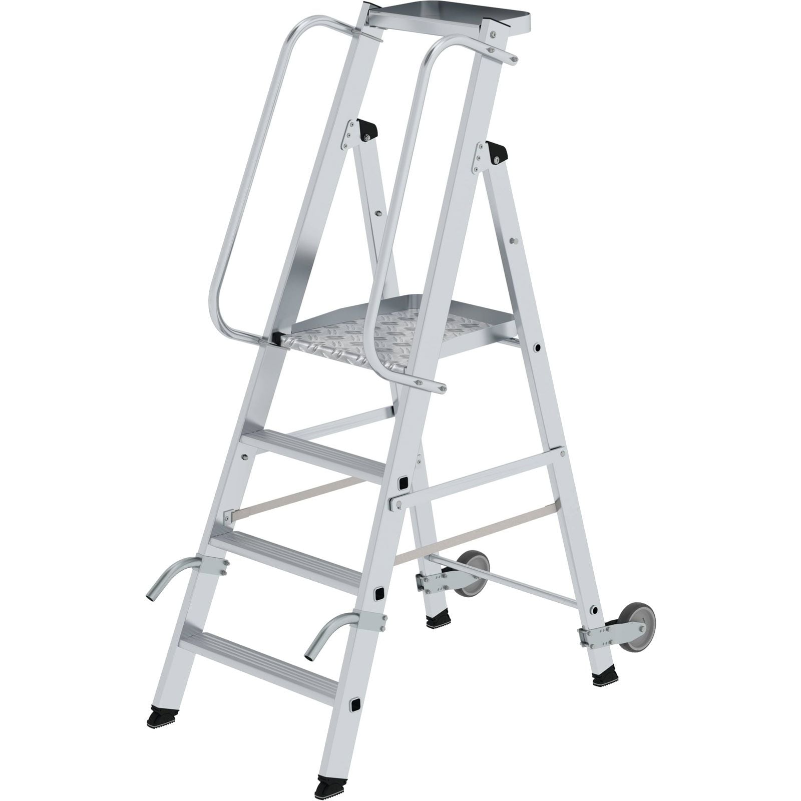 1x Günzburger Steigtechnik Plattformleiter mit Rollen und Griff 4 Stufen mit Ablageschale