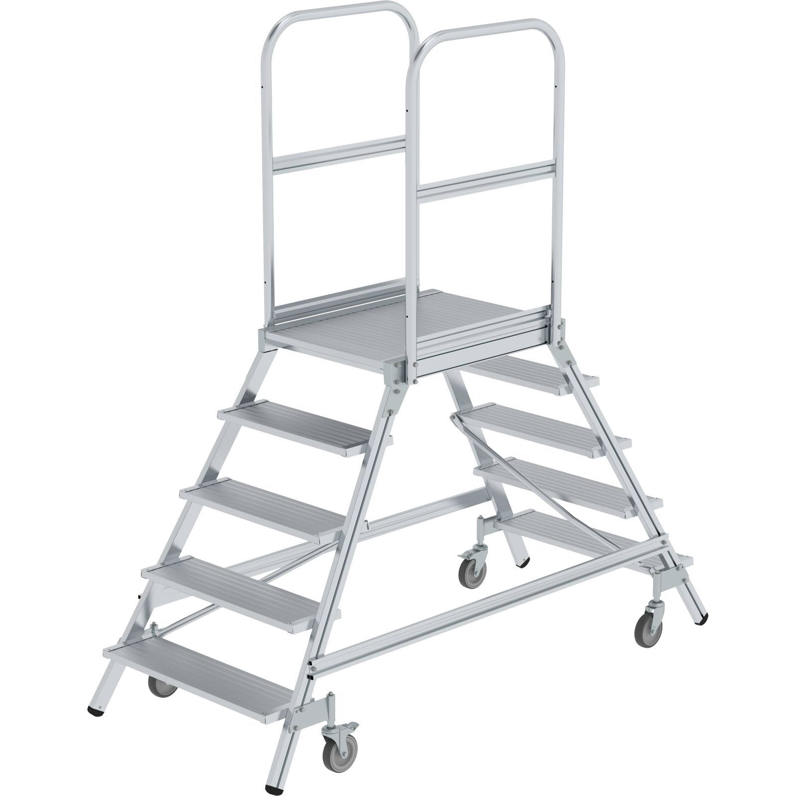 1x Günzburger Steigtechnik Podesttreppe beidseitig begehbar mit Federrolle Aluminium geriffelt 2x5 Stufen