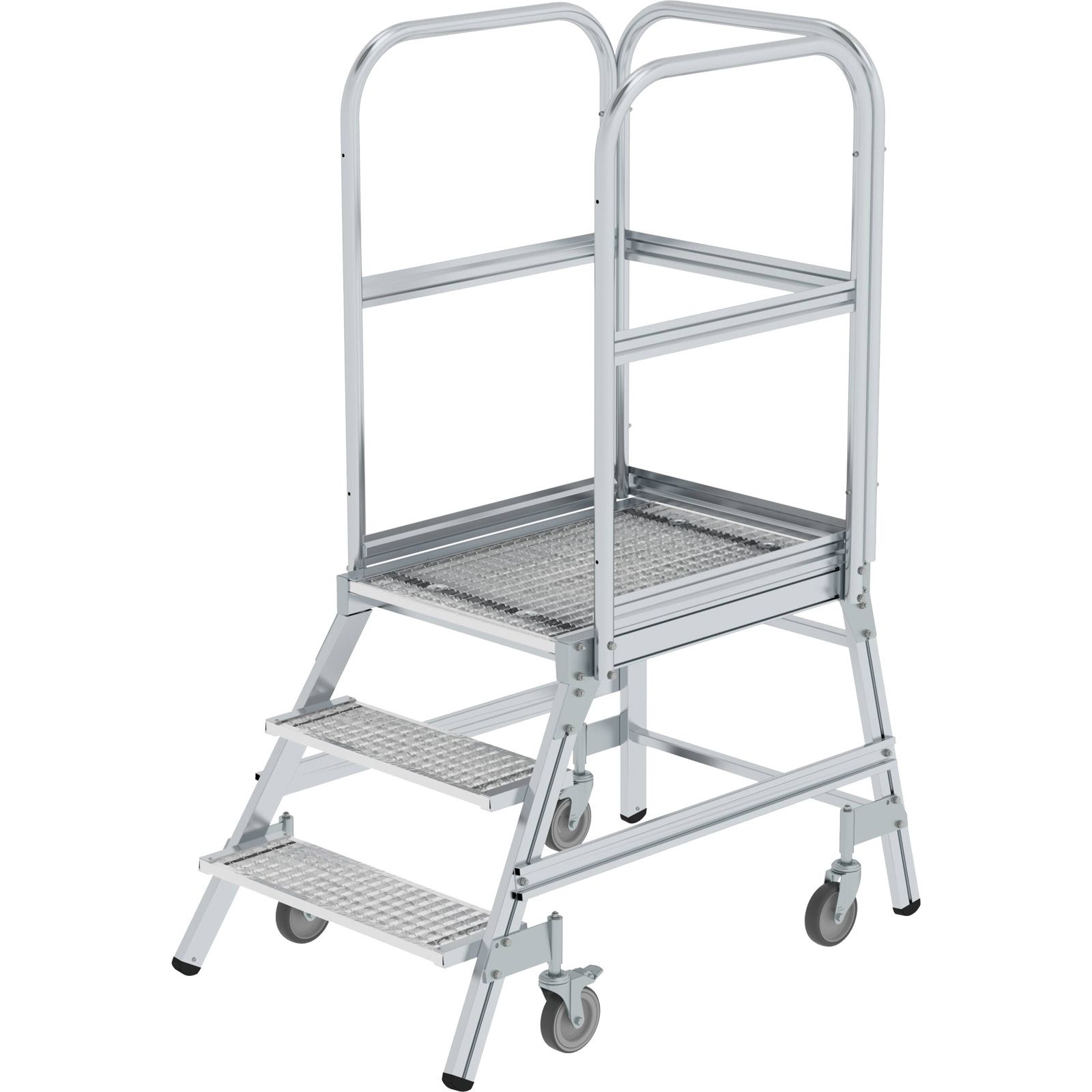 "Günzburger Steigtechnik Podesttreppe einseitig begehbar mit Federrolle Stahl-Gitterrost 3 Stufen - 051103"