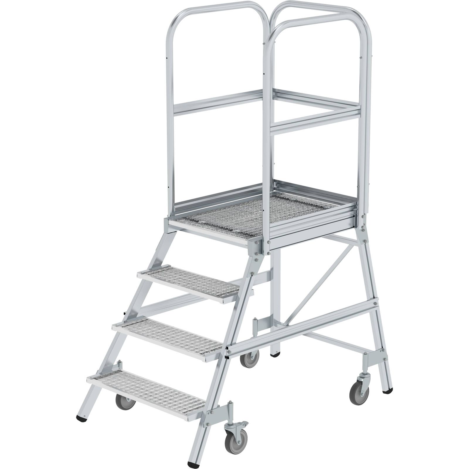"Günzburger Steigtechnik Podesttreppe einseitig begehbar mit Federrolle Stahl-Gitterrost 4 Stufen - 051104"