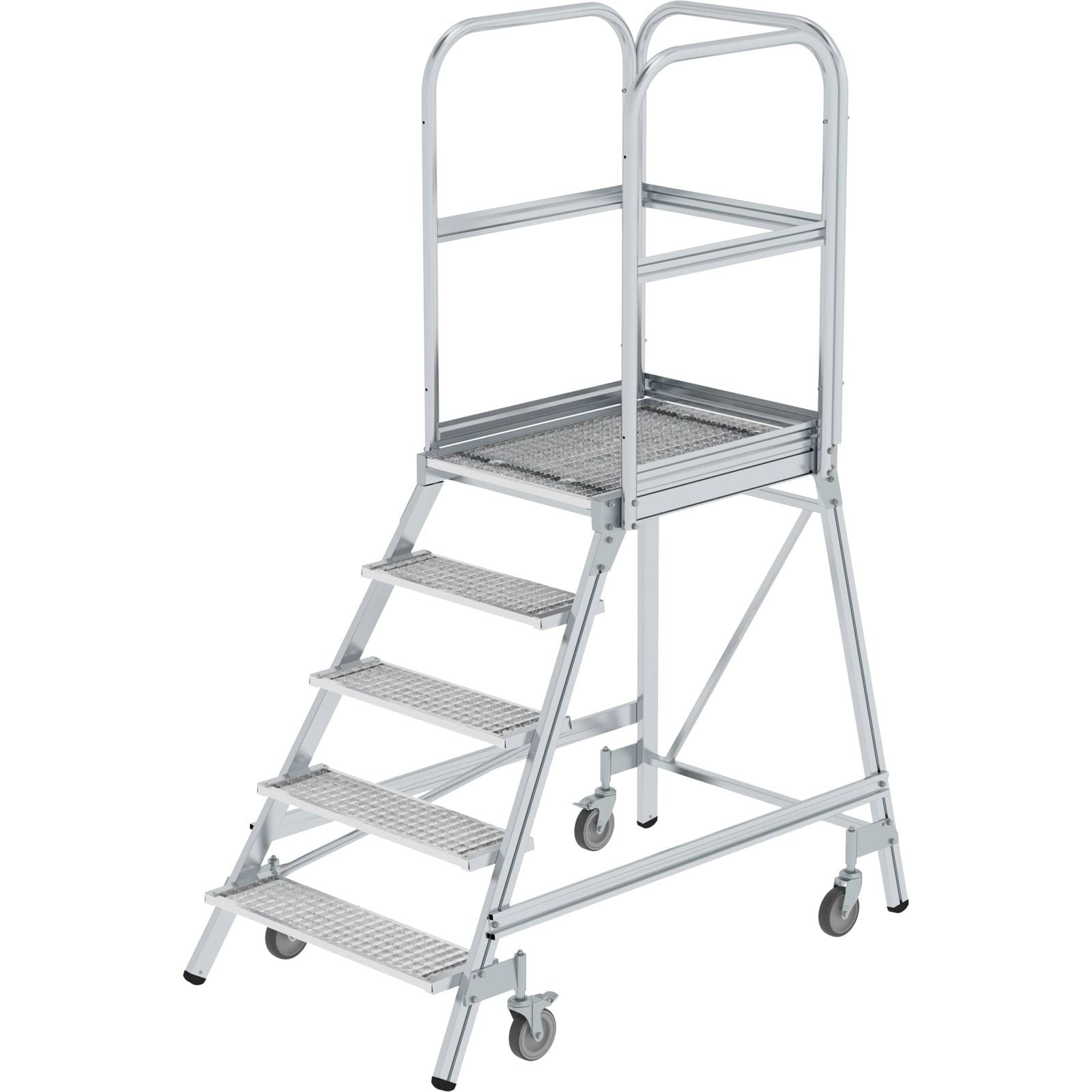 "Günzburger Steigtechnik Podesttreppe einseitig begehbar mit Federrolle Stahl-Gitterrost 5 Stufen - 051105"